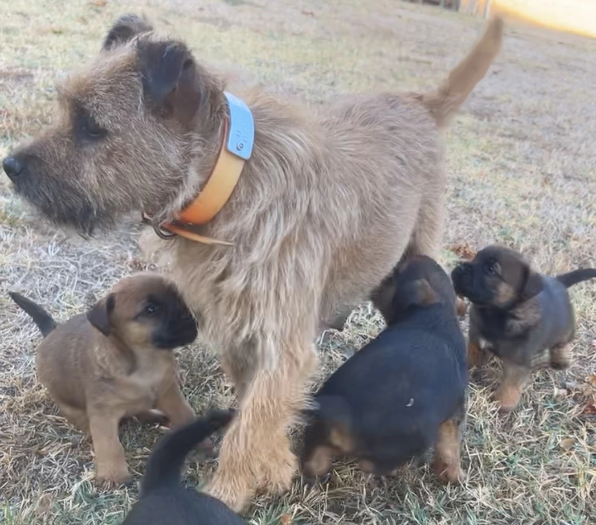 Male Border Terrier pup ready for his forever home. Born on 21 January 2025. Vet checked, wormed, vaccinated, and microchipped. Parents are purebreds, no papers. Socialised with siblings and other dogs, giving him a confident and well-balanced start. He has a friendly nature, enjoys playtime, and shows the classic Border Terrier spark that suits both active families and owners looking for a loyal working companion. He will make a great family pet and/or hunting dog, with the sturdy build and eager attitude the breed is known for. If you are looking for a pup with charm, energy, and a gentle temperament, he is a wonderful match.