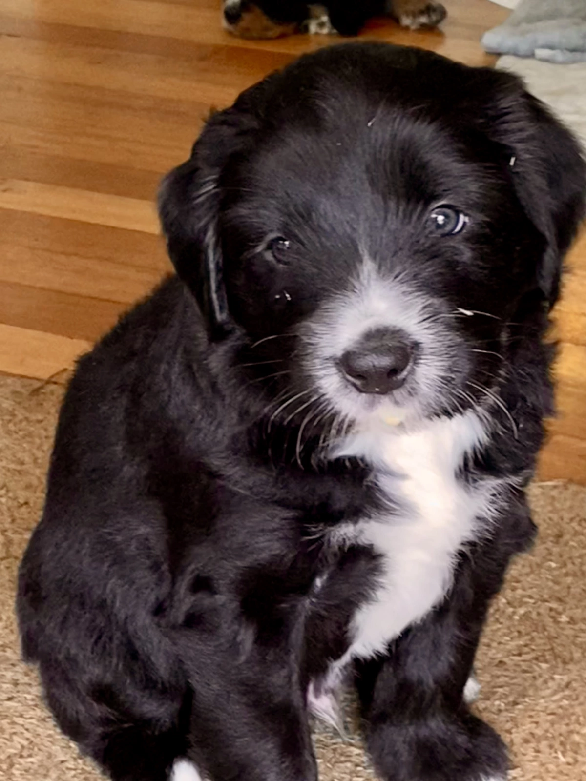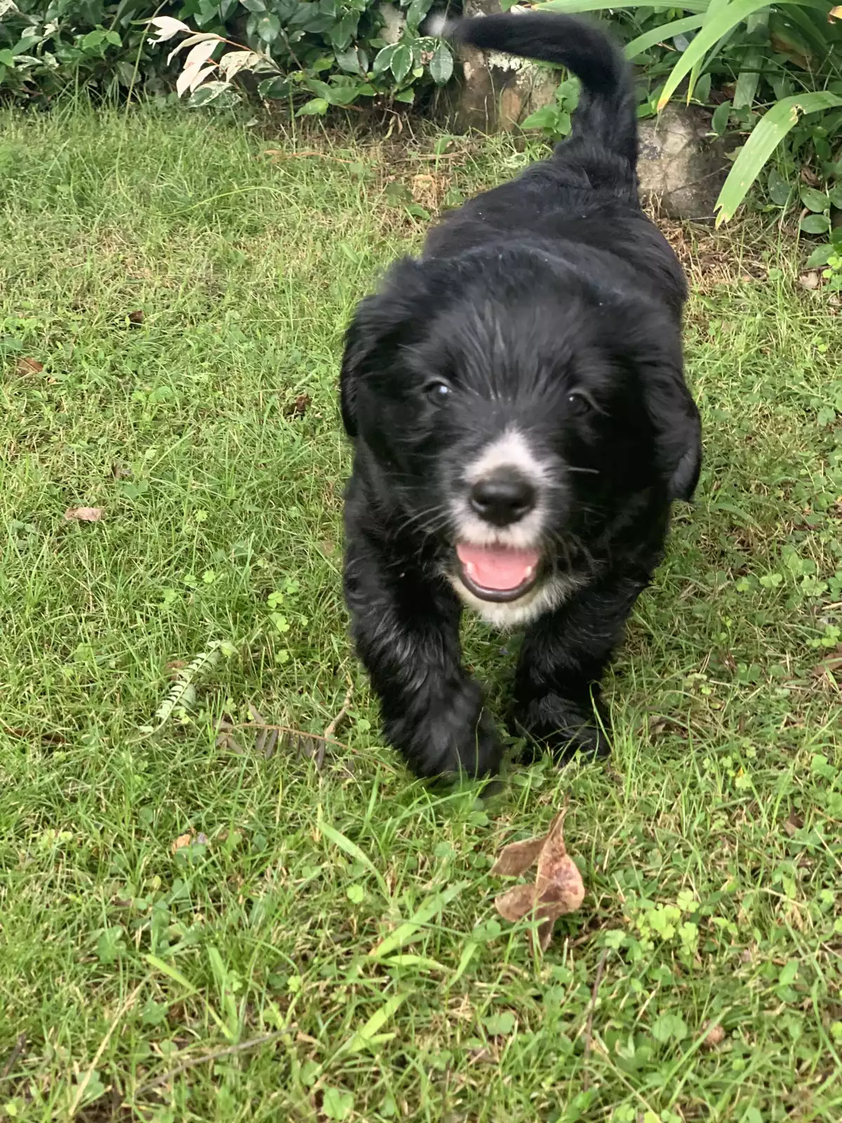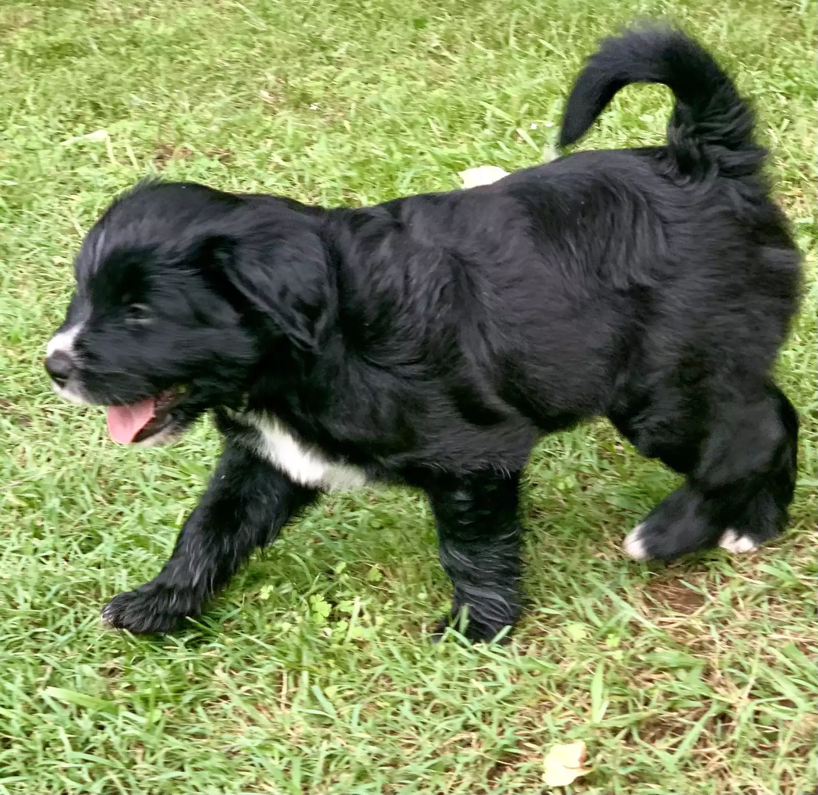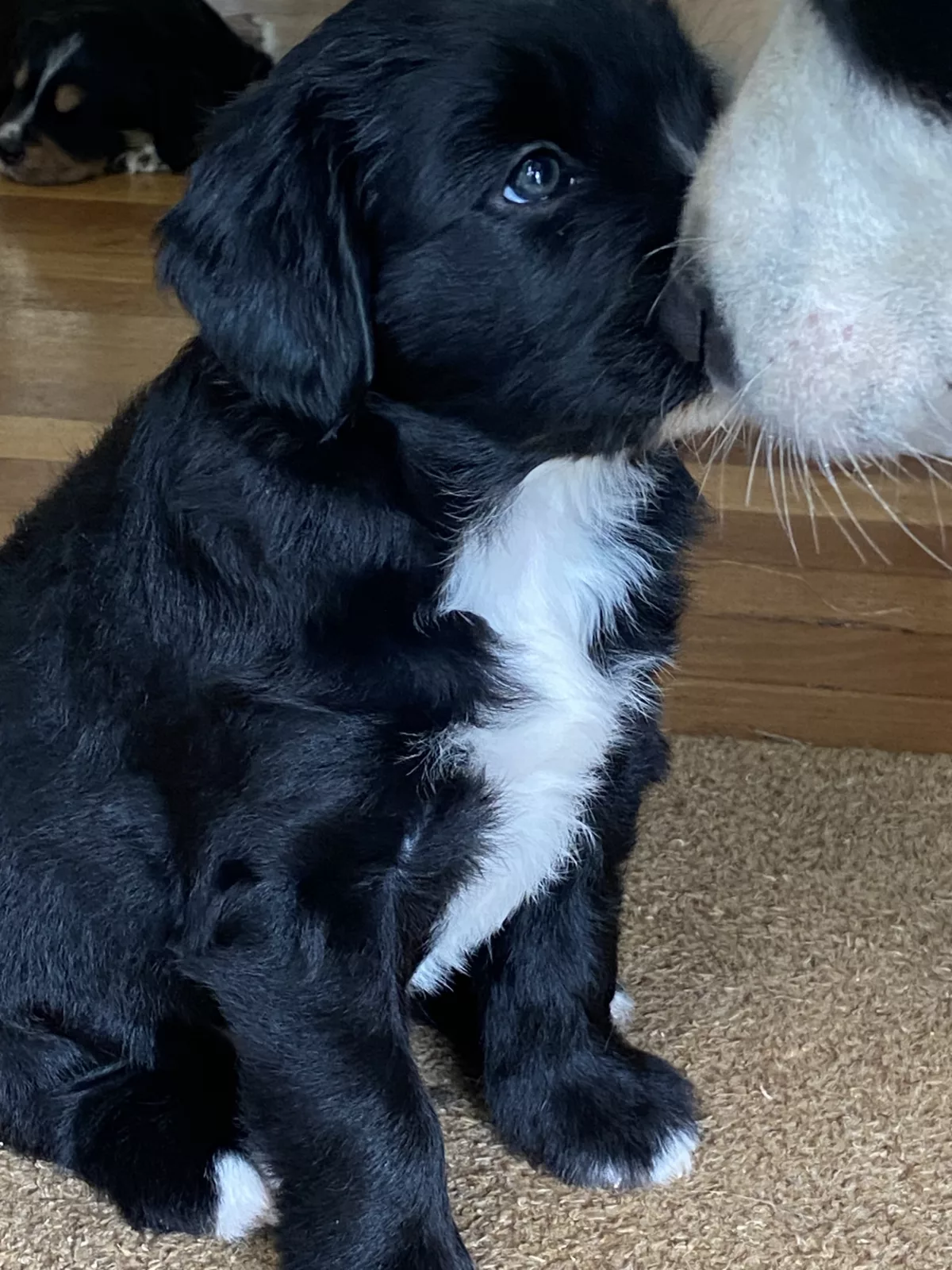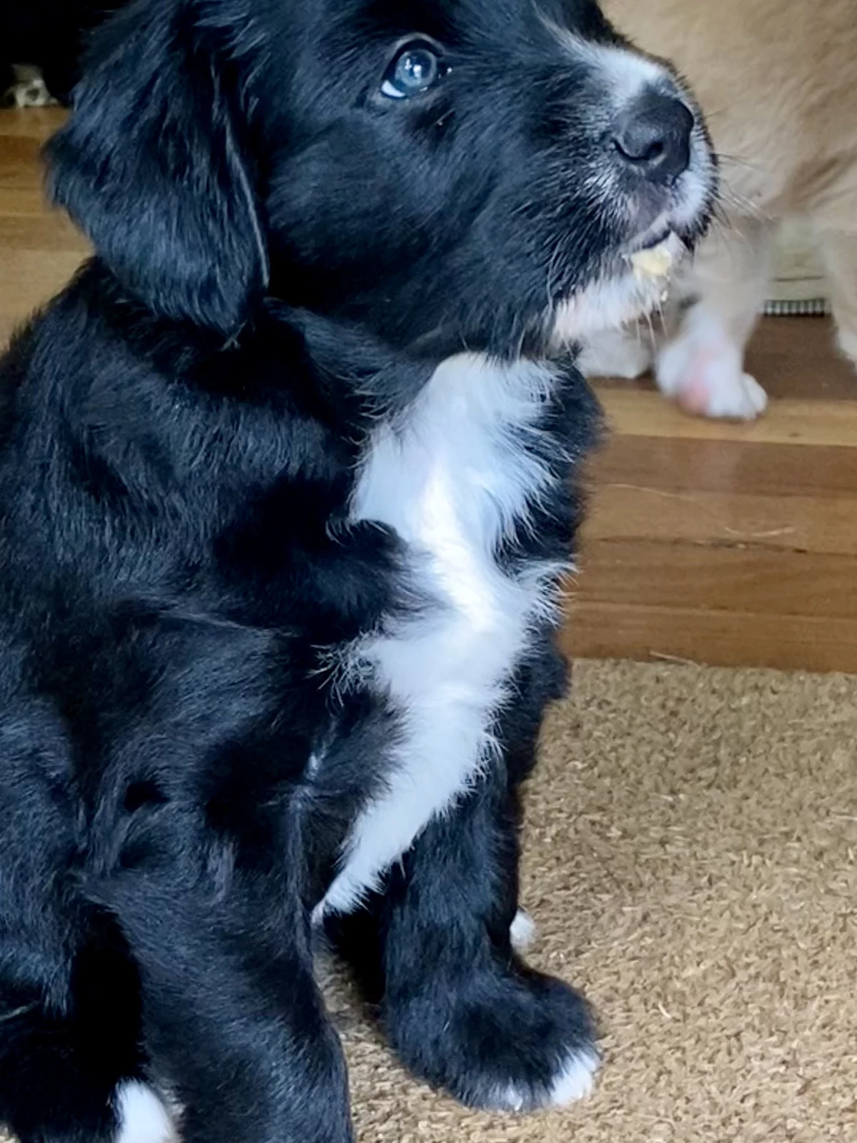 Beautiful and bounding two Border Labradoodle pup from first-time mum Border Collie cross and experienced Labradoodle dad. Raised affectionately in the home with our children with premium puppy food and the best of mothers.