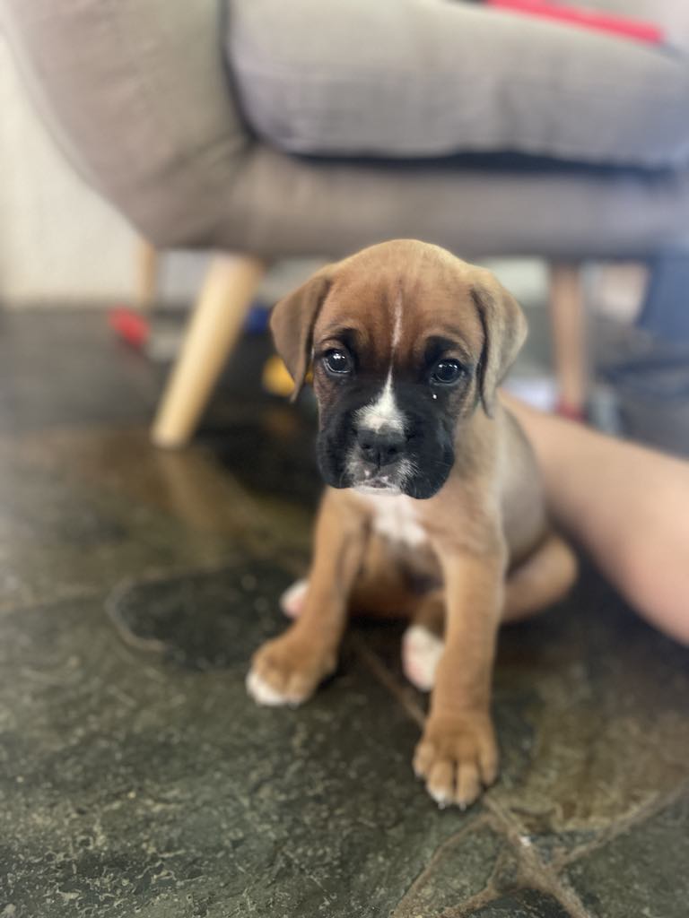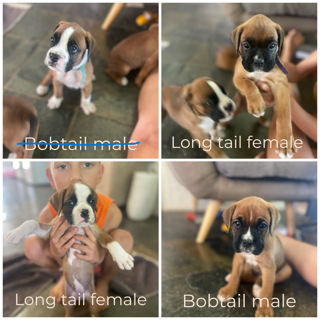 Purebred Boxer puppies born on 25/12/2023 are now looking for their forever homes. We have one handsome stump-tailed boy and two beautiful long-tailed girls available. All puppies have been microchipped, vaccinated, and wormed, and are growing up in a loving family environment with children, making them affectionate, social, and confident. Both parents are healthy, DNA-tested Boxers with no known health conditions, ensuring these pups come from excellent bloodlines. More photos and updates can be provided, and FaceTime calls are welcome for those wanting to meet them virtually. Transport assistance can also be arranged. Please contact us for more information or enquiries.