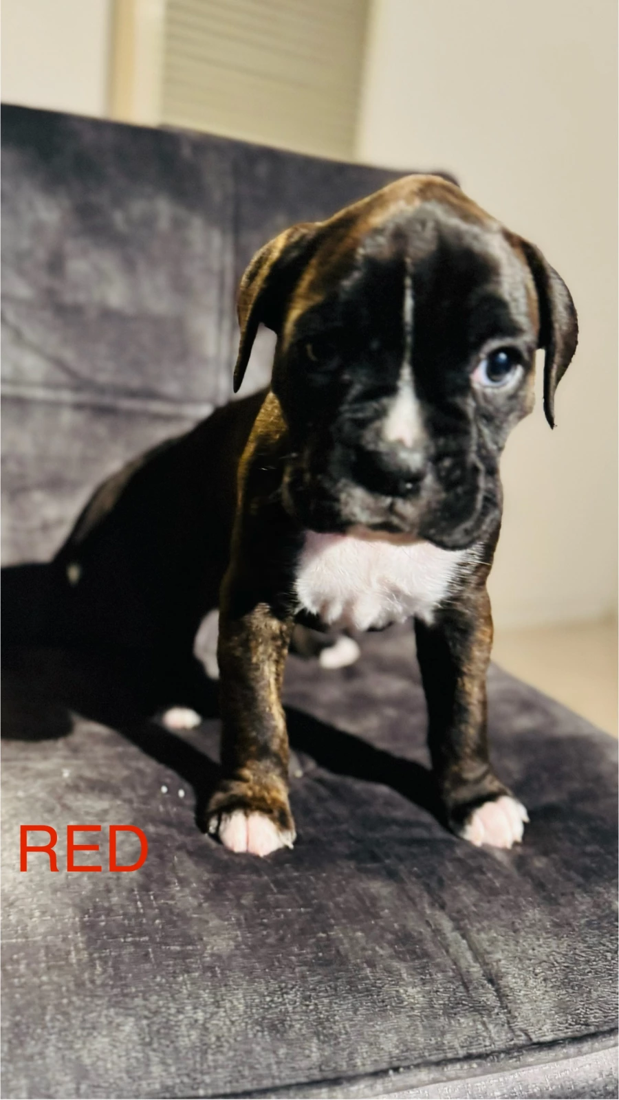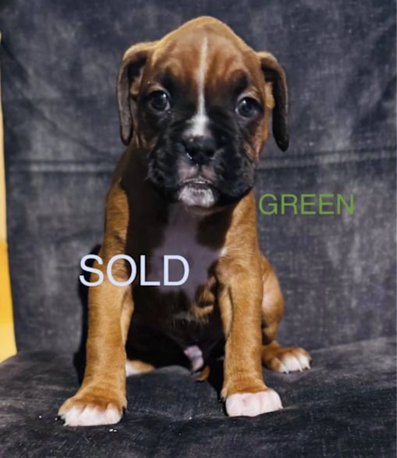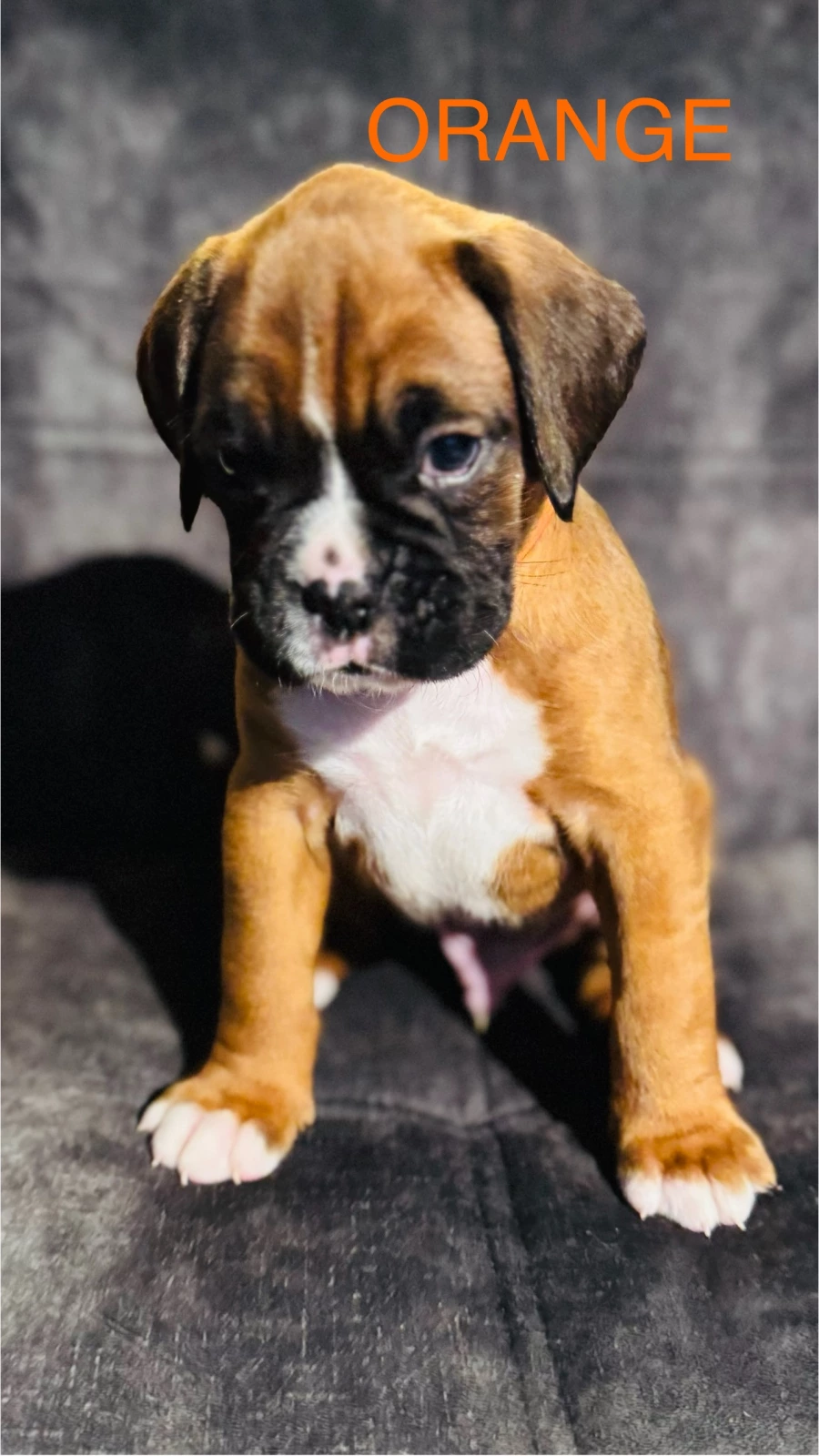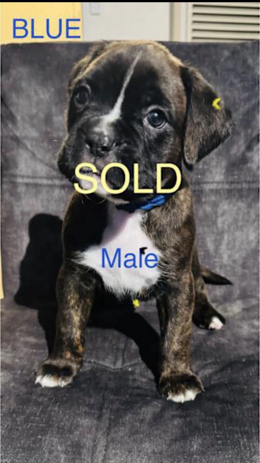 Only 4 still available as a 2 Tan Female is Sold, 1 Tan Male Sold and 1 Brindle Male is Sold (Please see photos for Puppies that are still available and which are Sold.)