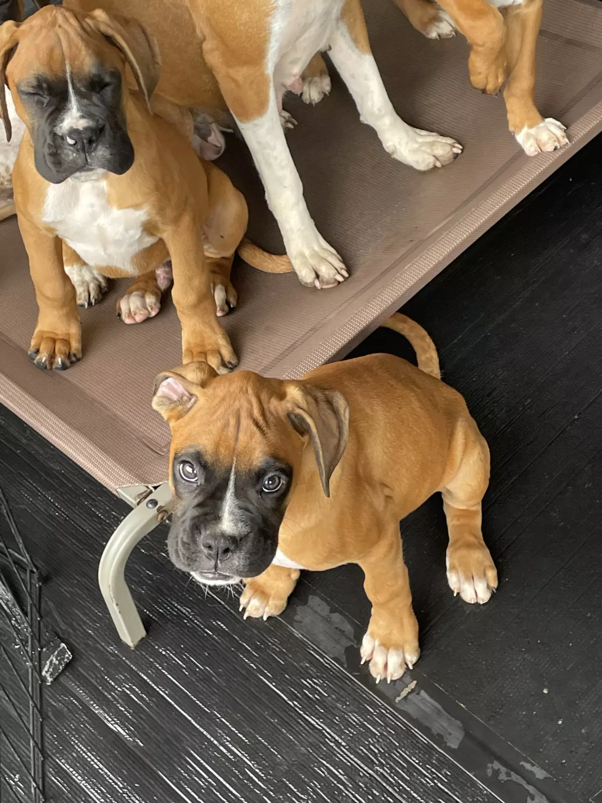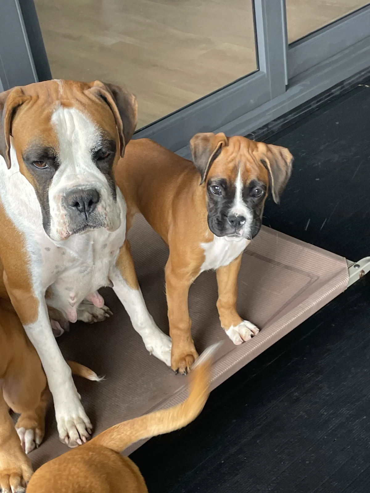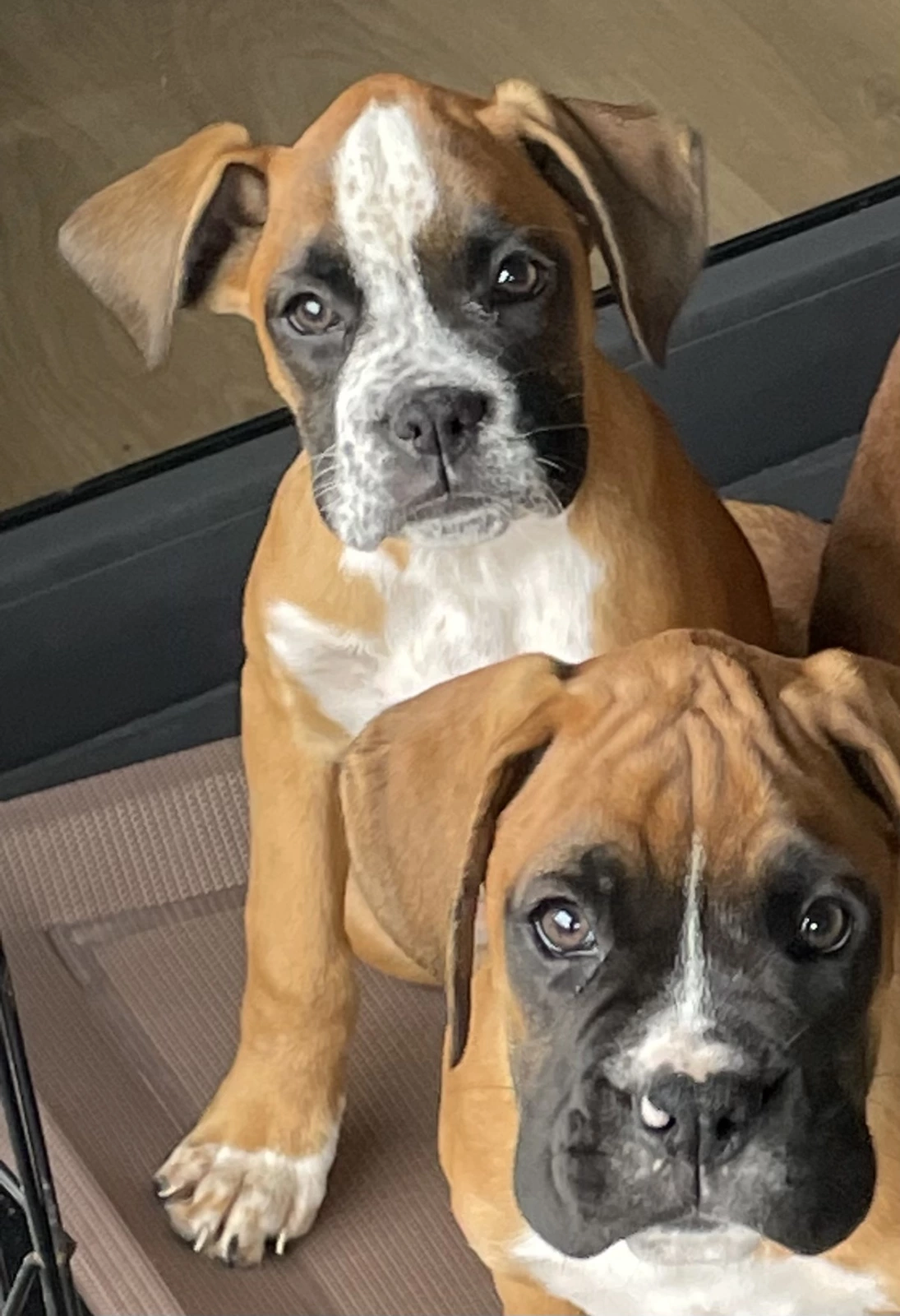 Coco and Herbie’s final litter of nine gorgeous Boxer puppies has just two remaining — one beautiful girl and one handsome boy — both are ready to head off to their loving new homes. Each puppy has been vaccinated, microchipped, and wormed, ensuring they are healthy and happy. Raised with care and affection, these puppies have developed wonderful temperaments and are already showing their parents’ playful and loyal nature. Both have soft coats, bright eyes, and charming personalities that make them impossible to resist. Don’t miss the chance to welcome one of these special pups into your family — contact us today for more details.