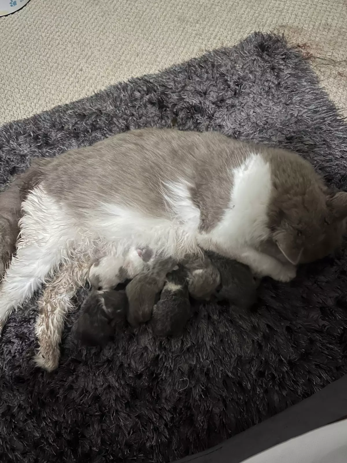 Born 04/12/2023. 5 kittens available: 1 blue and white, 1 lilac and white, 2 white with blue patches, and 1 solid blue. Mum and Dad have both been DNA tested with no health issues, giving peace of mind about their breeding and overall quality. Photos of both parents are available to view.