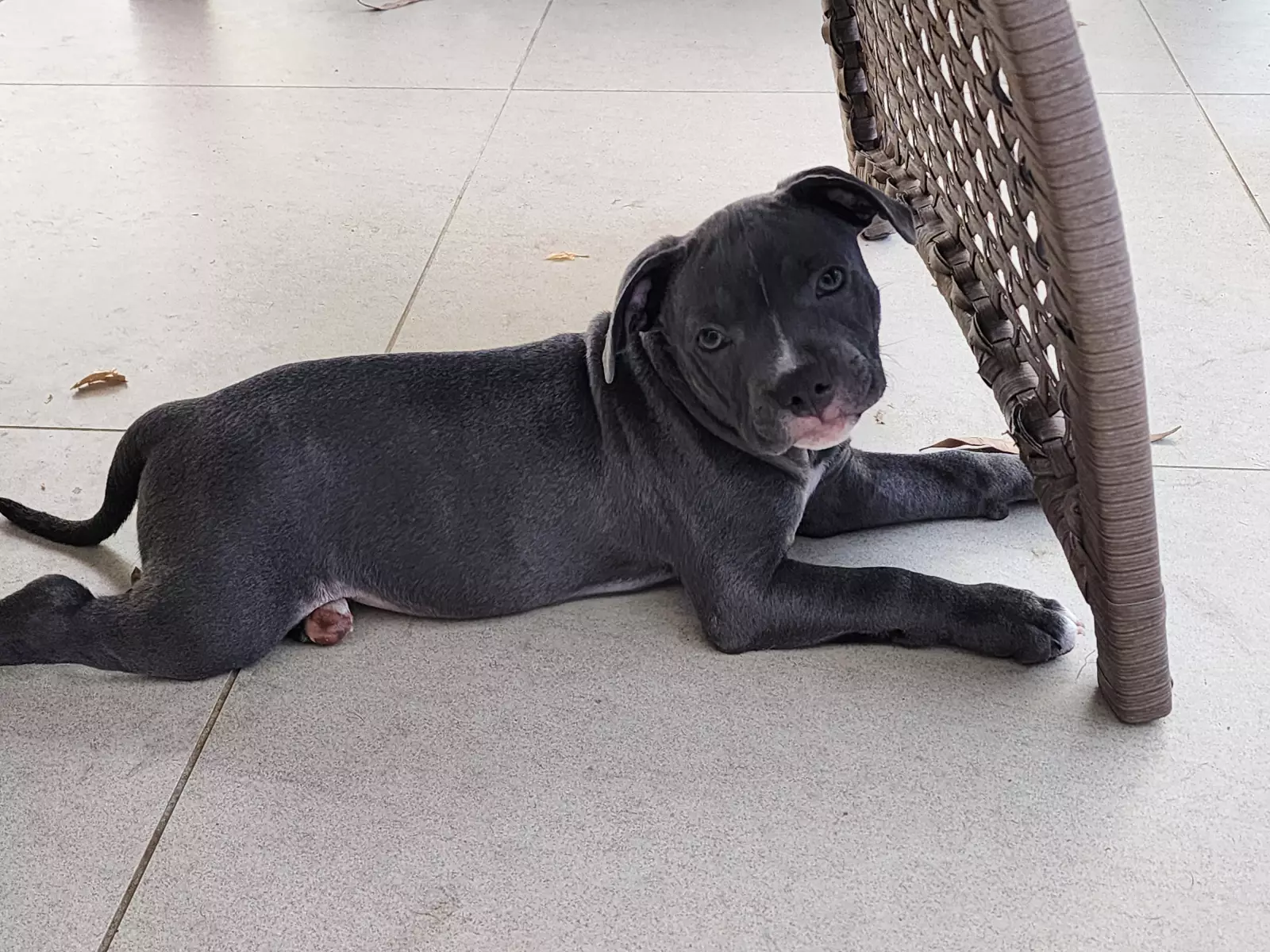 Urgent !! A beautiful litter of Blue Staffy Pups born on 16th August 23 only 4 x Males left. They are ready for their forever new home. All pups are vaccinated, wormed and microchipped. Mum is 3 years old having such a wonderful, loving, friendly outdoor and indoor nature. We allowed her to have this one litter that was organised with our Vet through AI from a Sire predetermined who is Silver and White. We will not be breeding with her again as she was desexed 25th September only allowing her to have the one litter. This was a choice we made when purchasing her. BIN0014001718502