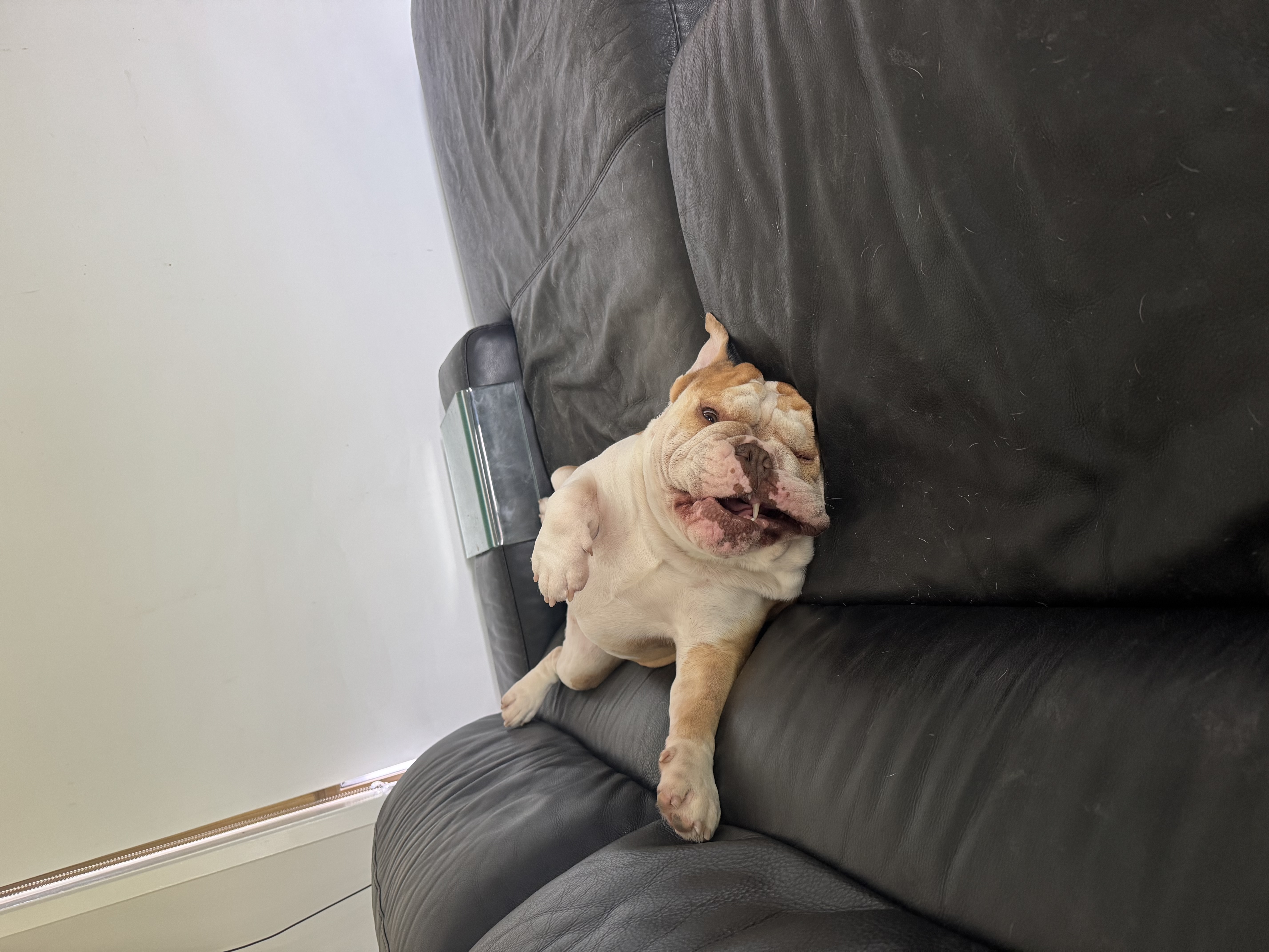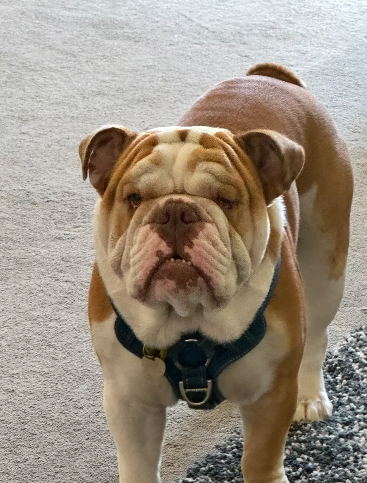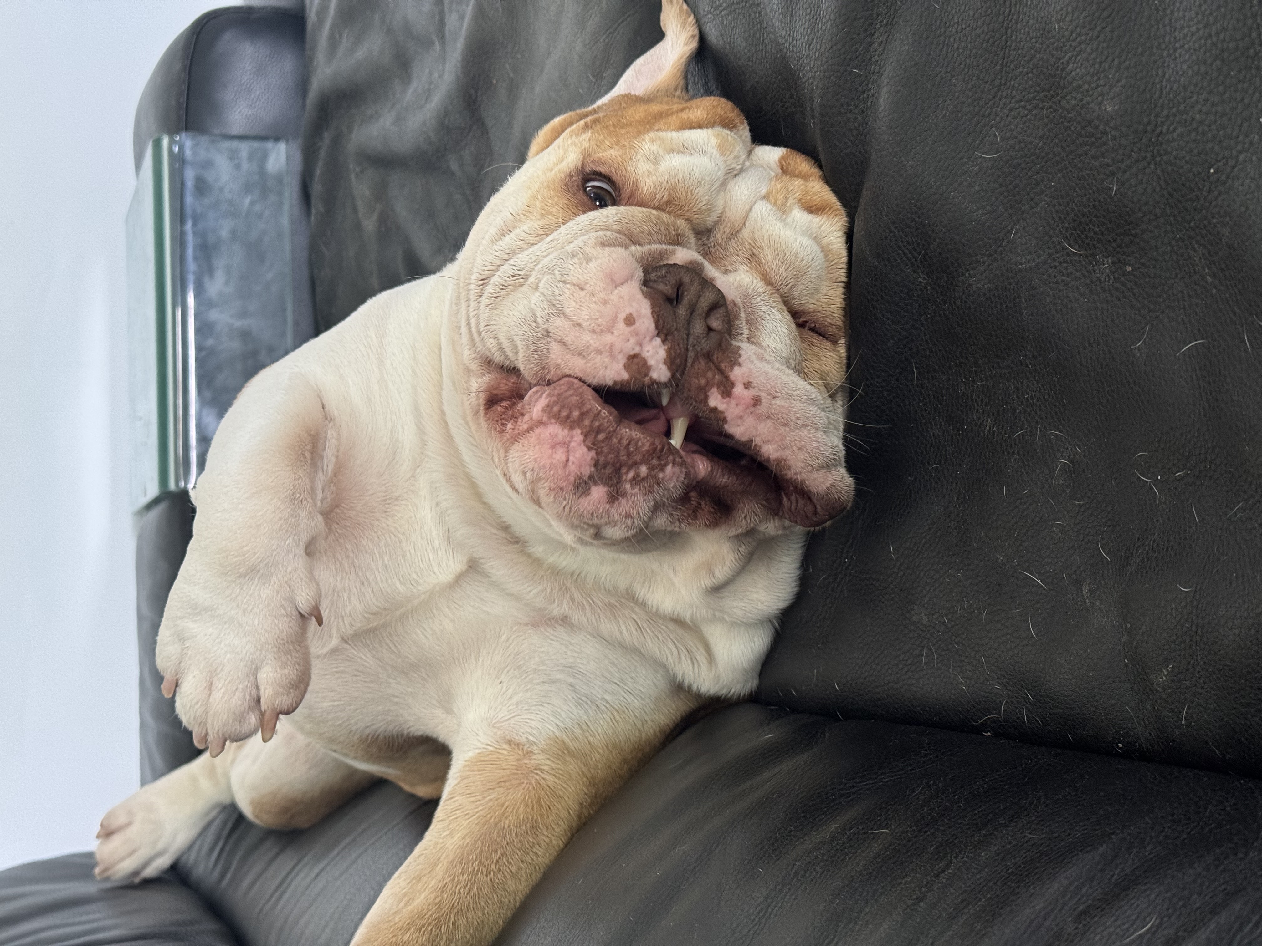 Gorgeous 2.5-year-old desexed pedigree British Bulldog available to a loving home. This handsome boy has a fantastic temperament—affectionate, loyal, and full of personality. He’s the perfect snuggle buddy but also enjoys a playful wrestle and plenty of attention. Raised in a family environment with two children, he’s gentle and patient, making him a great family companion. While he hasn’t been tested with cats, he gets along well with other dogs and enjoys social interactions. He would suit a home where he can be included in daily life, have space to relax indoors, and enjoy short walks or playtime in the yard. This sweet Bulldog will make a devoted and entertaining addition to any loving household.