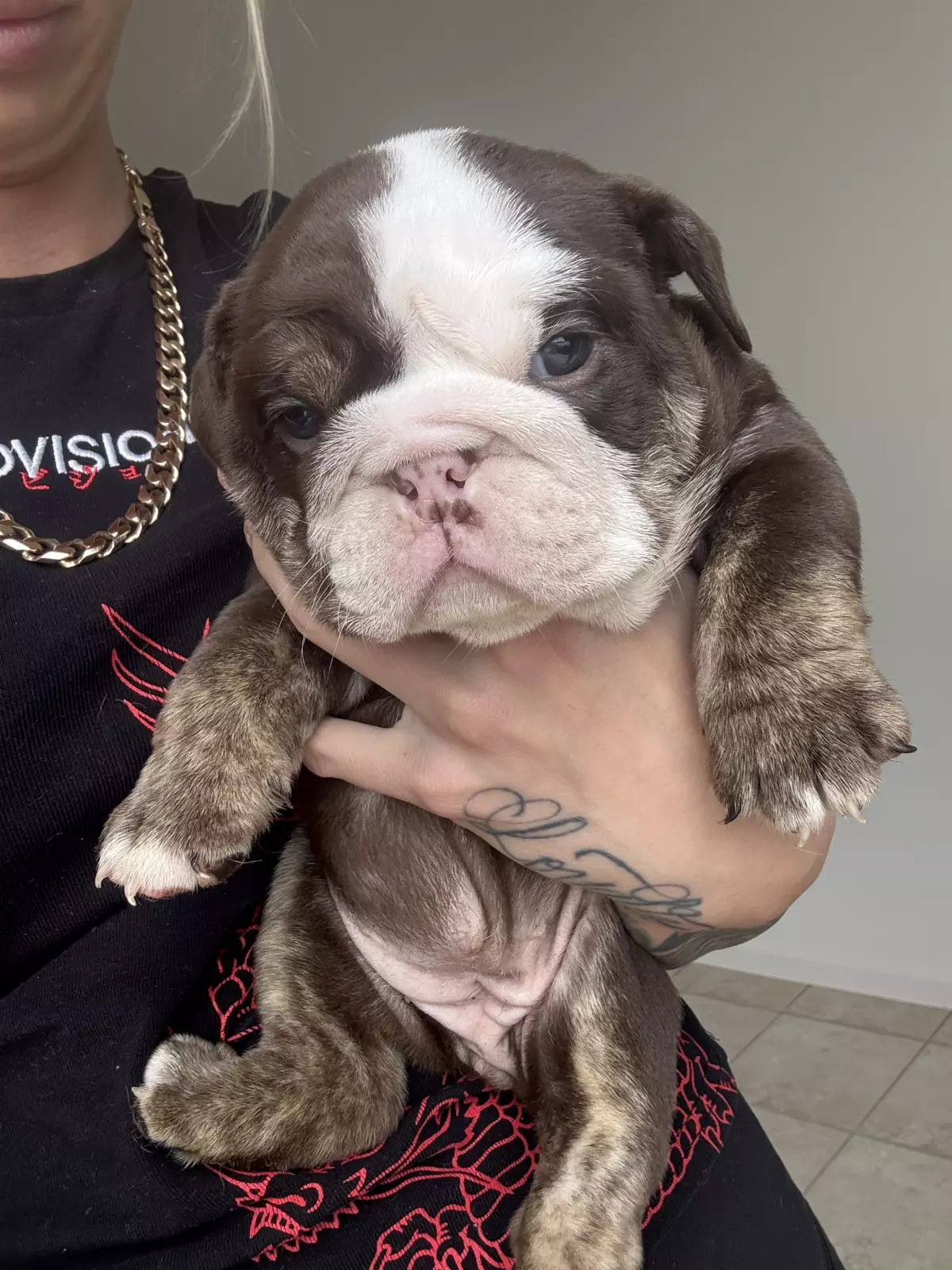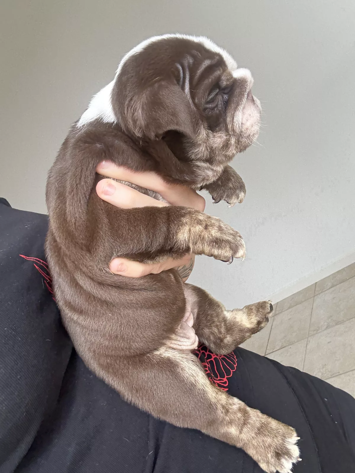 1 female & 1 male bulldog puppies that are 5 weeks old, looking for their furever homes from the 16th of March 2026.