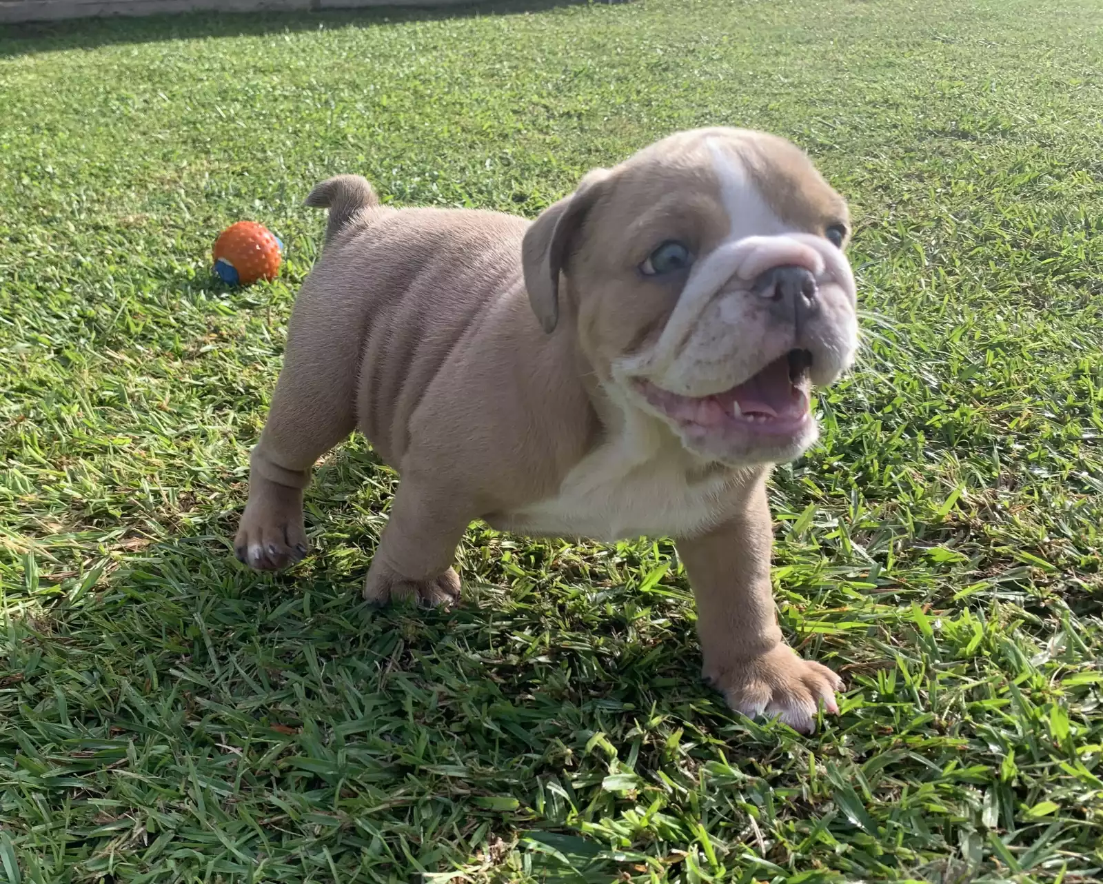 Sweet 7-week-old female purebred British Bulldog puppy ready to find her forever home soon. She will be registered with Master Dog Breeders and Associates (certified pedigree) and will come fully microchipped, vaccinated, and vet checked before pickup or delivery to her new family. This little girl has a loving temperament and is being raised in a caring home environment, so she’s well-socialised and used to plenty of cuddles and attention. British Bulldogs are affectionate, loyal, and make wonderful companions for families or individuals who enjoy a calm, relaxed lifestyle. She’ll thrive in a home where she can be part of everyday life and given lots of love. Genuine enquiries only—looking for the perfect forever home for her.