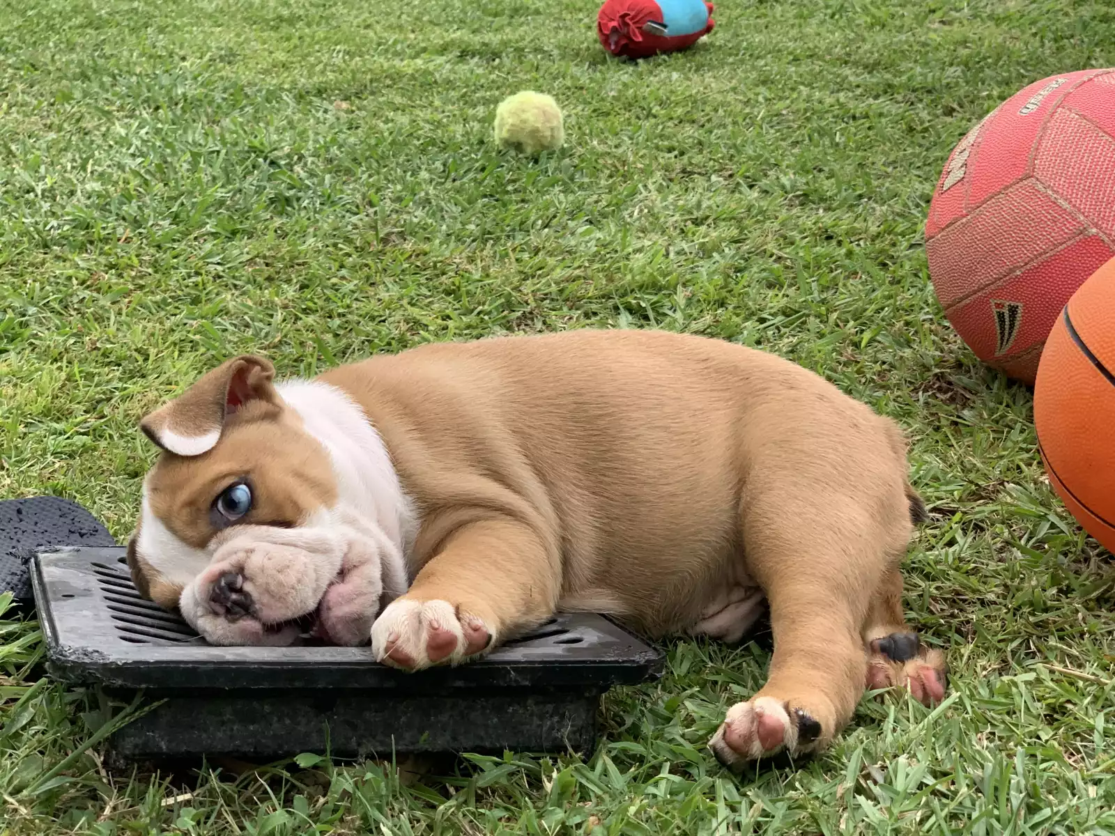 British Bulldog puppies wobble into your life with rolls of velvet skin, oversized paws, and eyes full of trust. Behind their stout build lies a gentle, affectionate pup that thrives on closeness and quiet routines. Easy to train with the right encouragement and eager to please their people, these little charmers grow into loyal, low-energy companions perfect for families, singles, or anyone after a sturdy best friend with a soft heart.