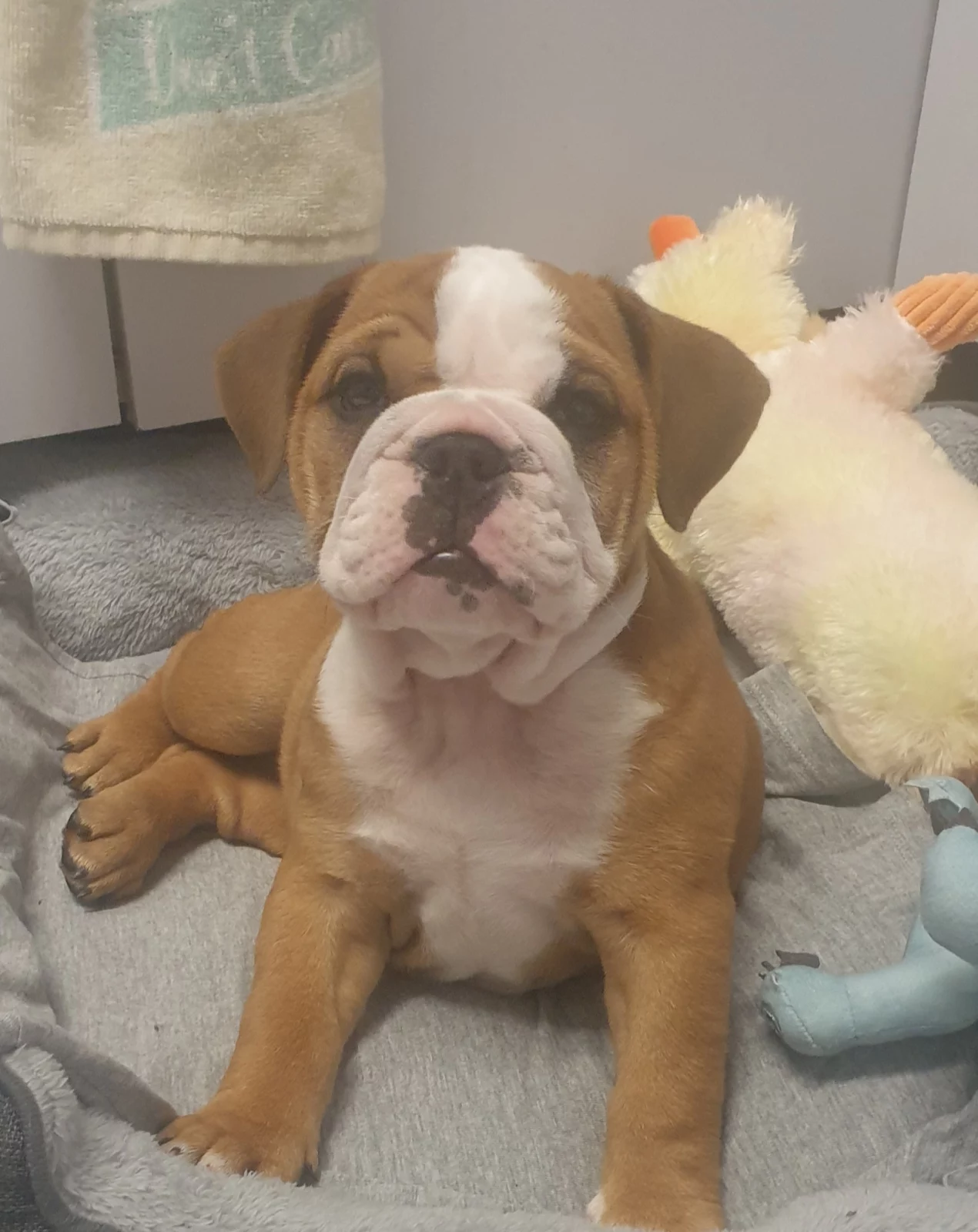 Beautiful female British Bulldog puppy, 10 weeks old, looking for a loving forever home. She has a sweet, gentle nature and adores being around people. Sadly, due to a change in circumstances, we’re unable to keep her and want to find her the best possible home. She has been microchipped, vaccinated, wormed, and vet checked, so she’s healthy and ready to settle into her new family. This gorgeous girl is playful, affectionate, and already showing that classic Bulldog charm. She would suit a caring household where she’ll get plenty of attention, short walks, and lots of cuddles. Serious enquiries only—she deserves a home that will love her as much as we do.