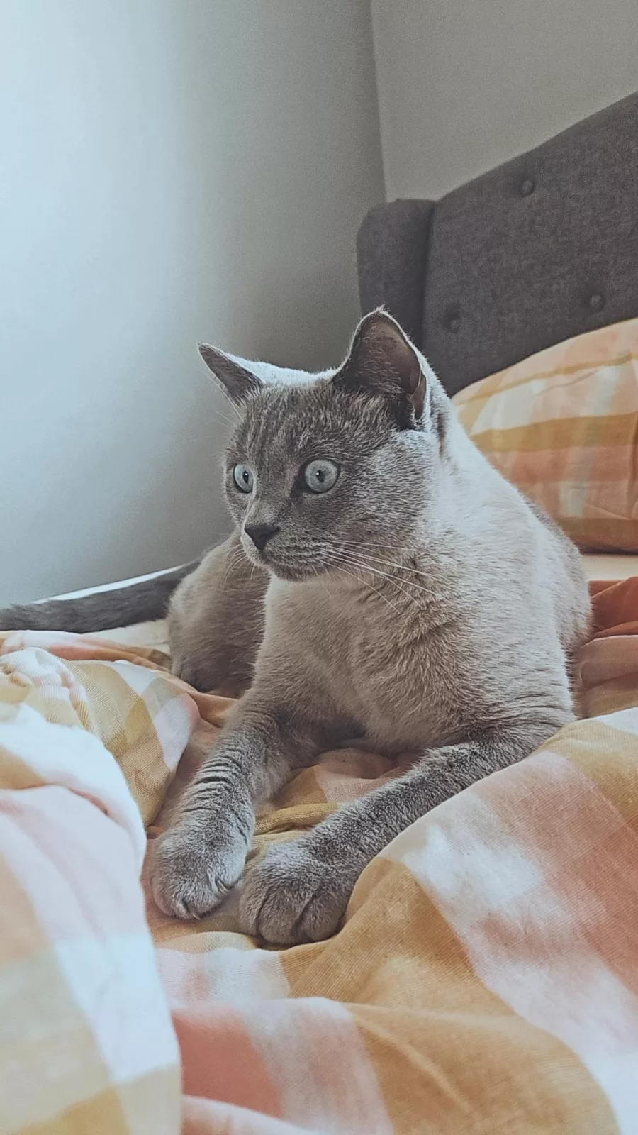 2 year old British Shorthair male cat. We have had him since he was 7 weeks old and he has been raised in a loving home environment with regular care and attention. He has developed a calm, gentle, and affectionate temperament, making him an easy and enjoyable companion to have around.