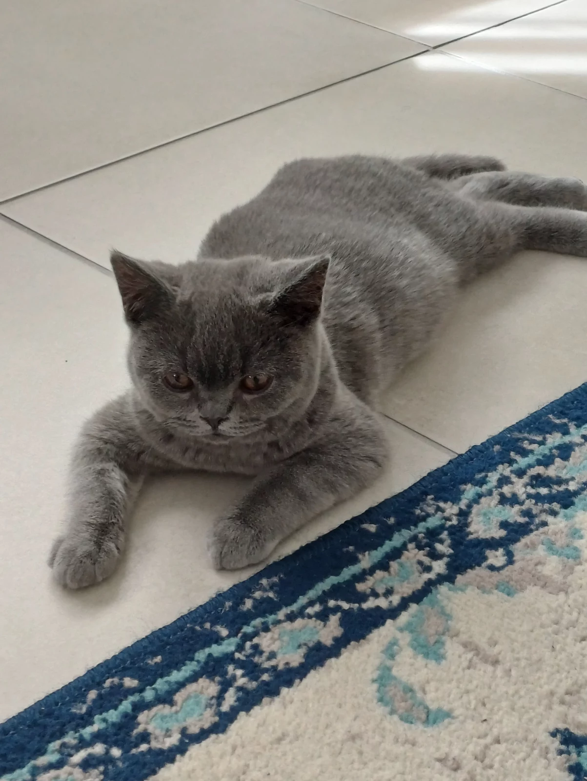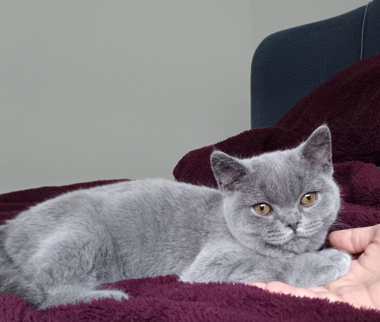 We have 1 kitten,he is 5 months old,male,blue colour coat.