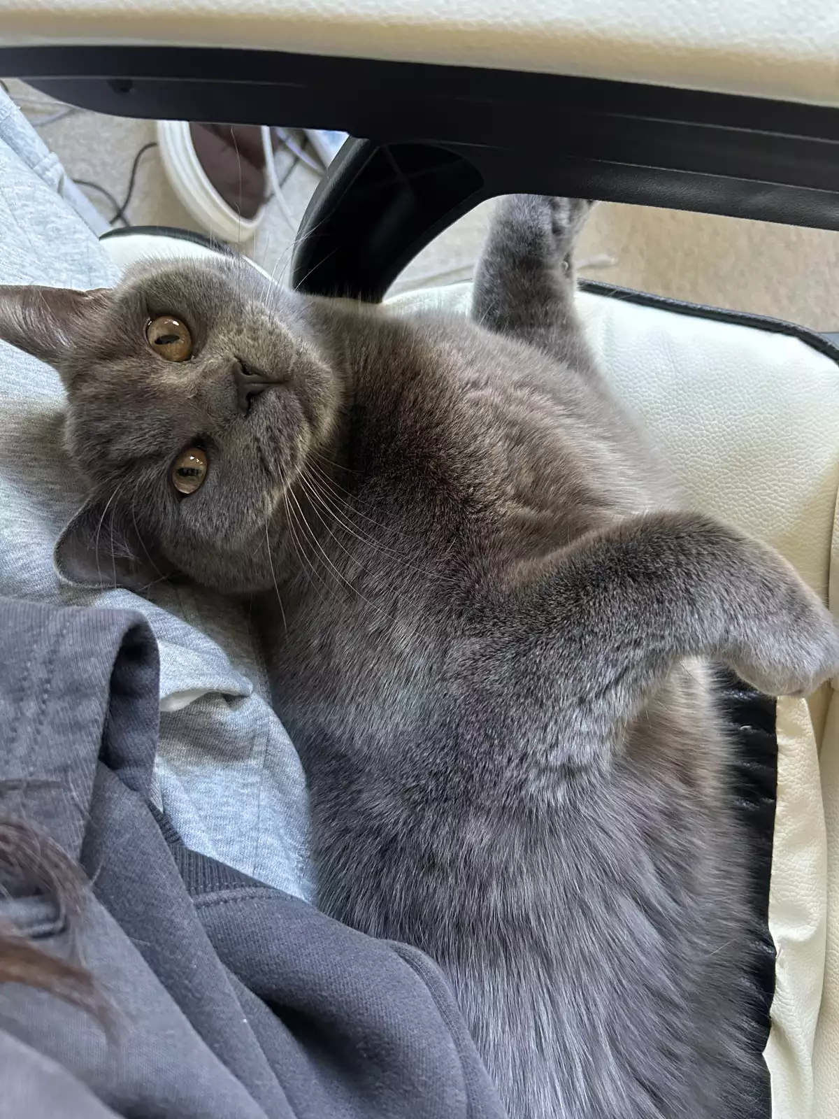 One British Shorthair for sale! His name is Tommy and he was born on 17 October 2024. He is microchipped, desexed, and up to date with vaccinations. He currently eats Purina dry and wet cat food, although he’s not picky and will eat almost anything. Hobbies include climbing, chasing anything that moves, lying on soft blankets and looking out the window. Tommy is very chatty and loves your attention, especially in the form of cuddles and chin scratches. Litter trained and raised in a loving home. Will be okay with kids, as long as they don’t rough play with him.