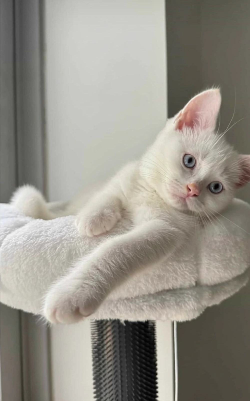 This charming 10-week-old boy features a stunning white coat paired with striking blue eyes, giving him a soft and elegant appearance. He has been vaccinated and is fully litter trained, making the transition into his new home smooth and stress-free. Raised in a caring environment, he has developed a very affectionate and friendly temperament, enjoying human interaction and companionship. He loves attention and will happily spend time cuddling or following you around the house.