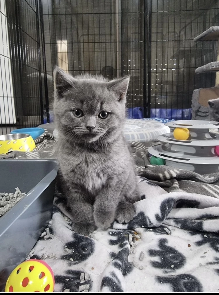 British Shorthair kittens all solid blue colour. Both male and female available. Currently 8 weeks old. Vet health checked, vaccinated, wormed, and microchipped. These kittens are super cute, chunky, and healthy, raised in a home environment with regular handling, making them well socialised and affectionate.