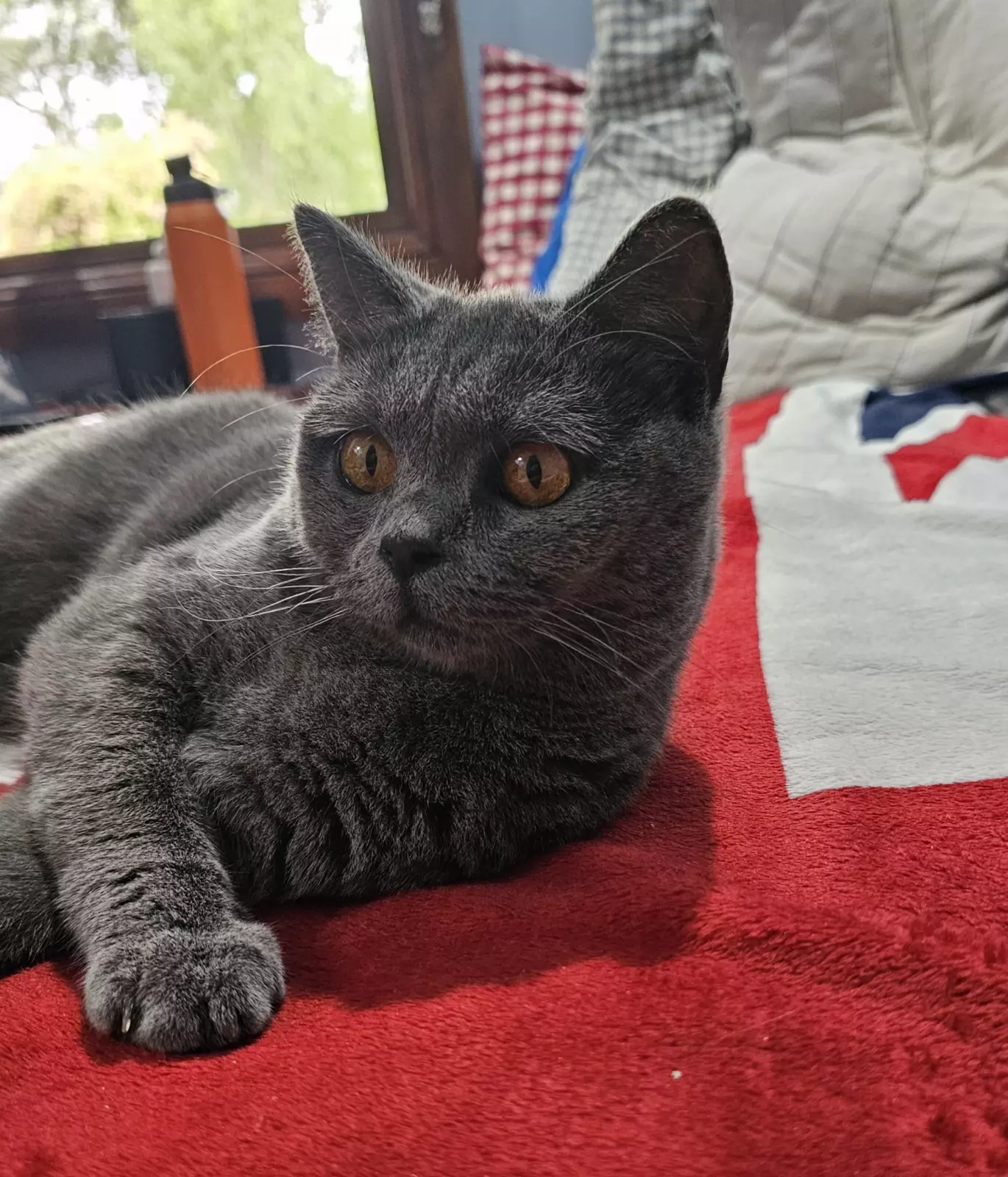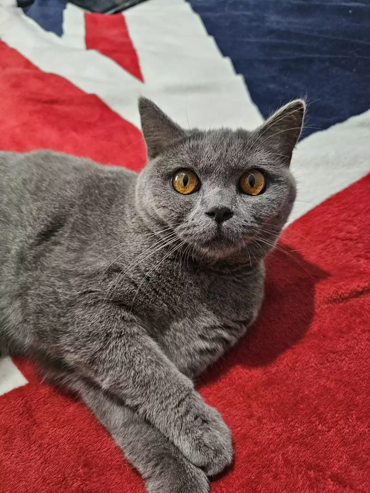 Luna is a beautiful grey British Shorthair. She was born 05/02/2024 and is 10 months old. She has been raised in a loving home environment and has developed a sweet, gentle personality. She loves kids and cuddles, and enjoys being around people, often seeking attention and affection from her owners.