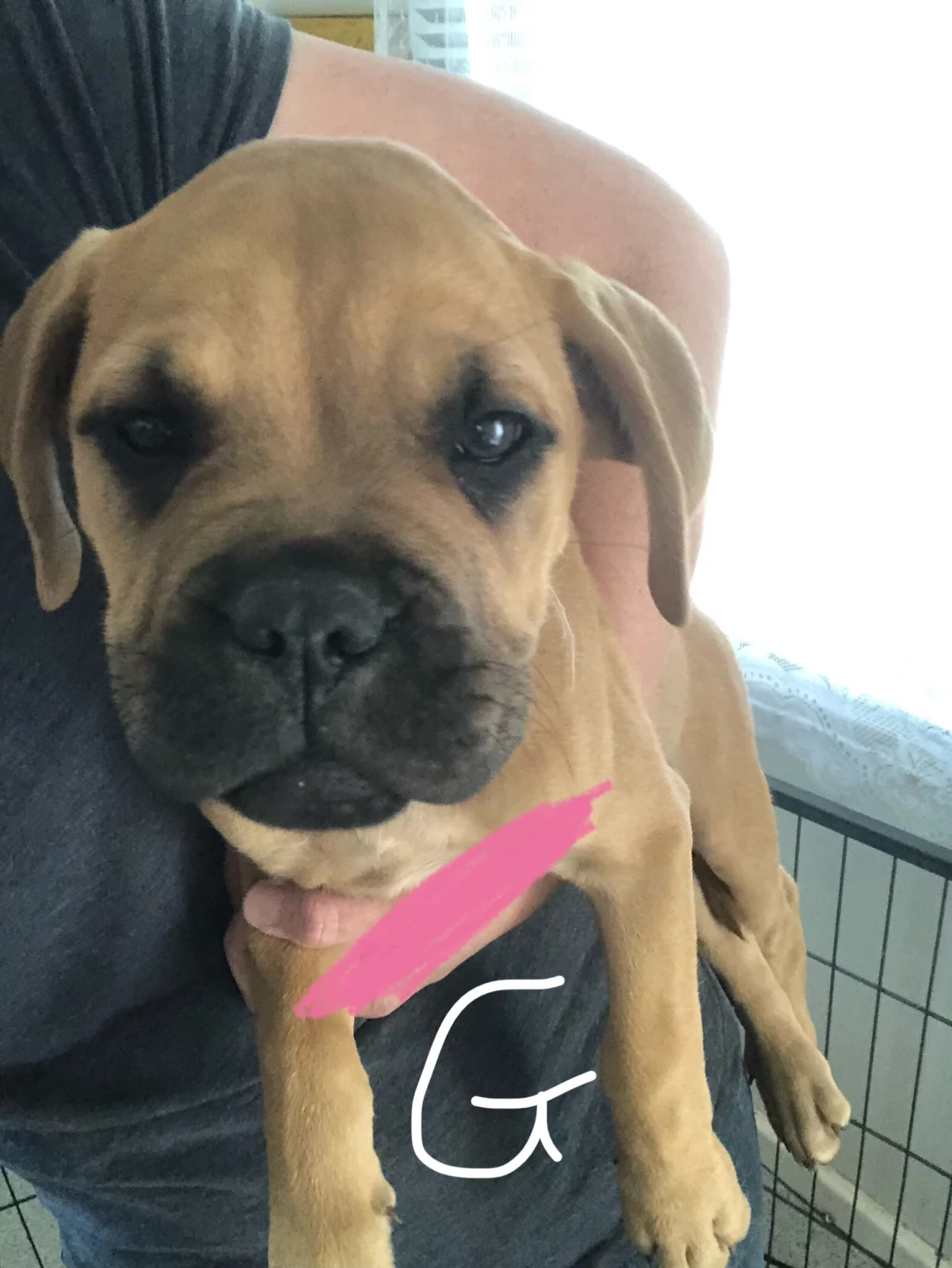 They all sleep inside and have done since they were born, have access to the outdoors throughout the day. They eat a cup of dry food each (natures gift atm) but were raised on eukanuba which is high quality food. Then for tea they have another cup of dry and a cup of pasta veg rice mix. They’re all fed individually as to ensure they’re all getting an adequate amount of food each. These amounts will need to be increased as they grow of course. They have massive appetites so very food oriented to train. All are (mostly) toilet trained. They’re all weighing 10kg give or take for females. They will need their 2nd vaccinations also. I’d like to have some photos and to be kept informed on their progress as well please :)