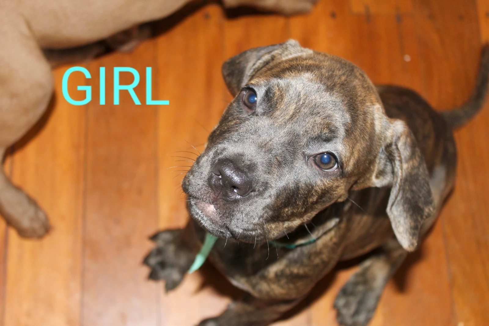 Beautifully natured 10 week old Australian Bandogs. 3 females left; One black, one black and tan brindle and 1 tan brindle. Vet checked, vaccinated and microchipped or $1200. Gorgeous family dogs who love a cuddle and are great with children and animals of all sizes. Mum is amazing, beautiful natured, super friendly. I bring her into work with me all the time to socialise with my residents (disability support), she knows all her commands by sign, i dont have to speak for her to sit or stay and they love having her around. Always been social around dogs and children of all sizes, never had an issue. Very loving and gentle natured when it comes to food and sharing with other animals.