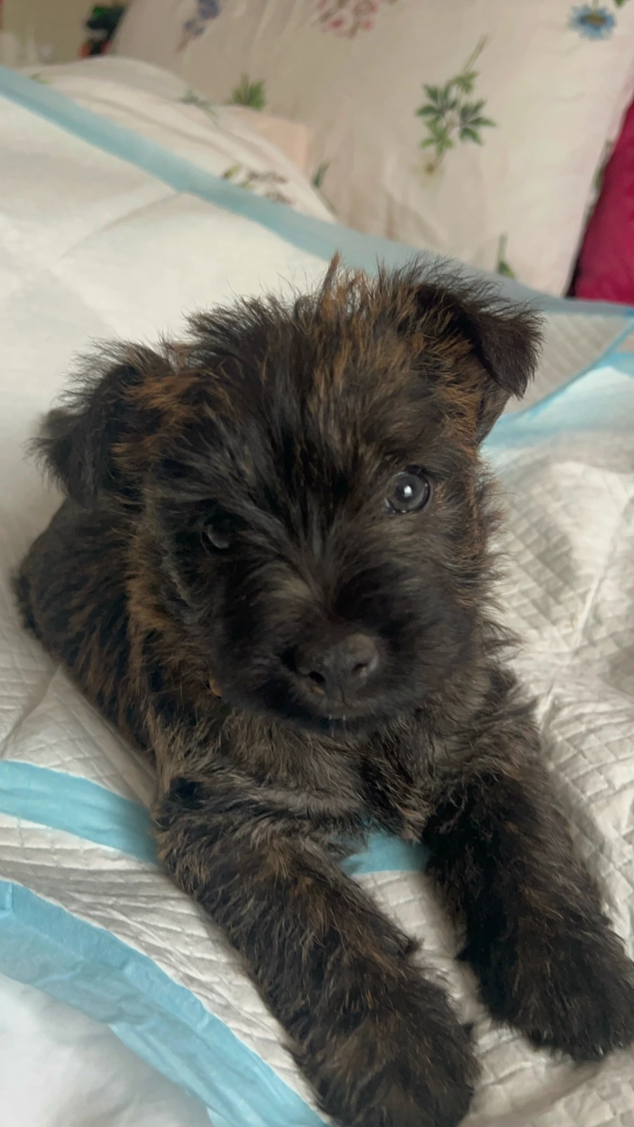 Purebred Cairn Terrier puppy for sale, ready now. Born on the 9th of October, this sweet little puppy is vaccinated, microchipped, and has been regularly wormed every 2, 4, 6, and 8 weeks.