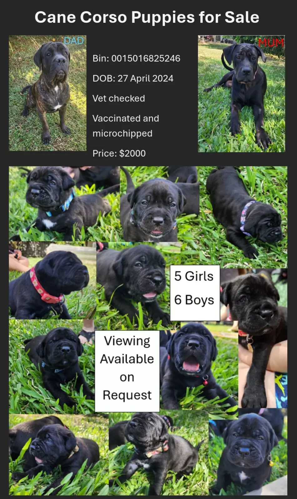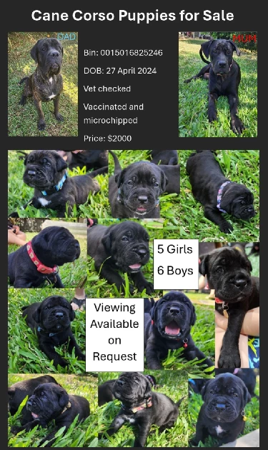 These beautiful Cane Corso puppies represent a significant commitment to the historical Italian guardian breed, known for its intelligence, loyalty, and imposing physique. The litter currently boasts a total of ten available pups, ensuring a variety of temperaments and sizes for potential owners to select from.