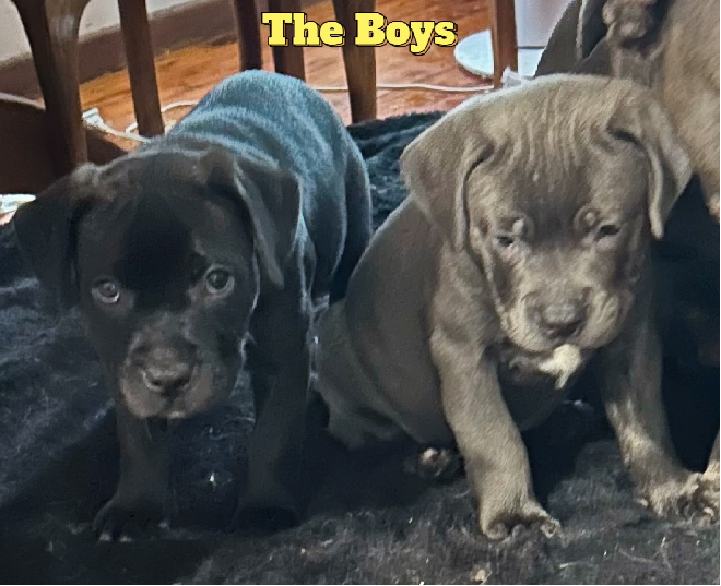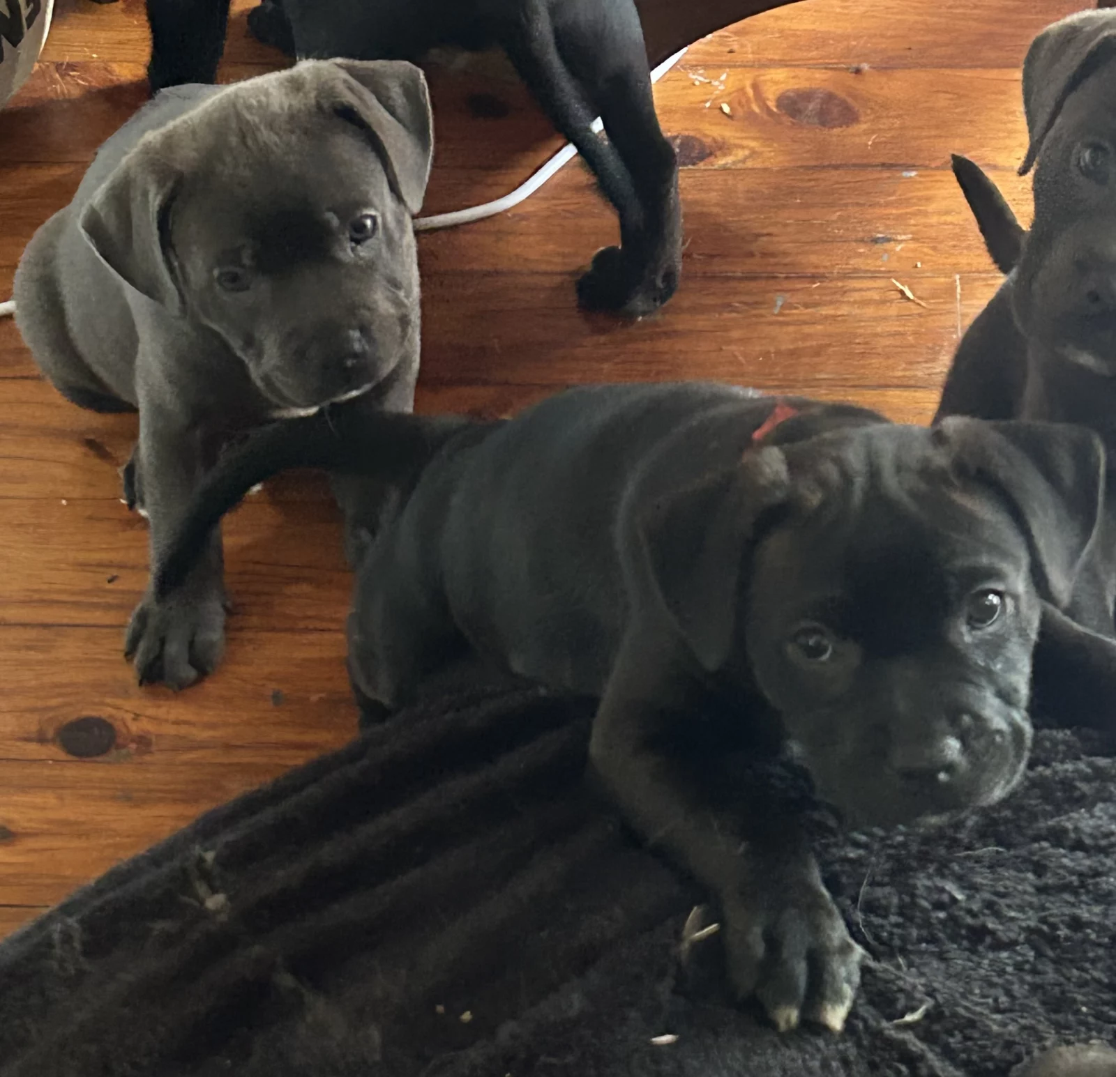 These truly delightful puppies are now reaching the optimal age of eight weeks old, making them ready to transition seamlessly into their new homes and begin their formal training. This unique crossbreed inherits traits from two highly loyal and protective lineages. The sire is a magnificent, purebred Cane Corso, possessing full pedigree papers, contributing immense loyalty, a sturdy build, and the highly desirable guarding instinct inherent to the Italian Mastiff. The dam is a purebred English Staffordshire Bull Terrier (Staffy) with her own complete papers, lending robustness, an incredible love for children, and the Staffy's well-known "Nanny Dog" disposition. Crucially, both parents have undergone comprehensive DNA testing to ensure the genetic health and purity of the contributing lines.