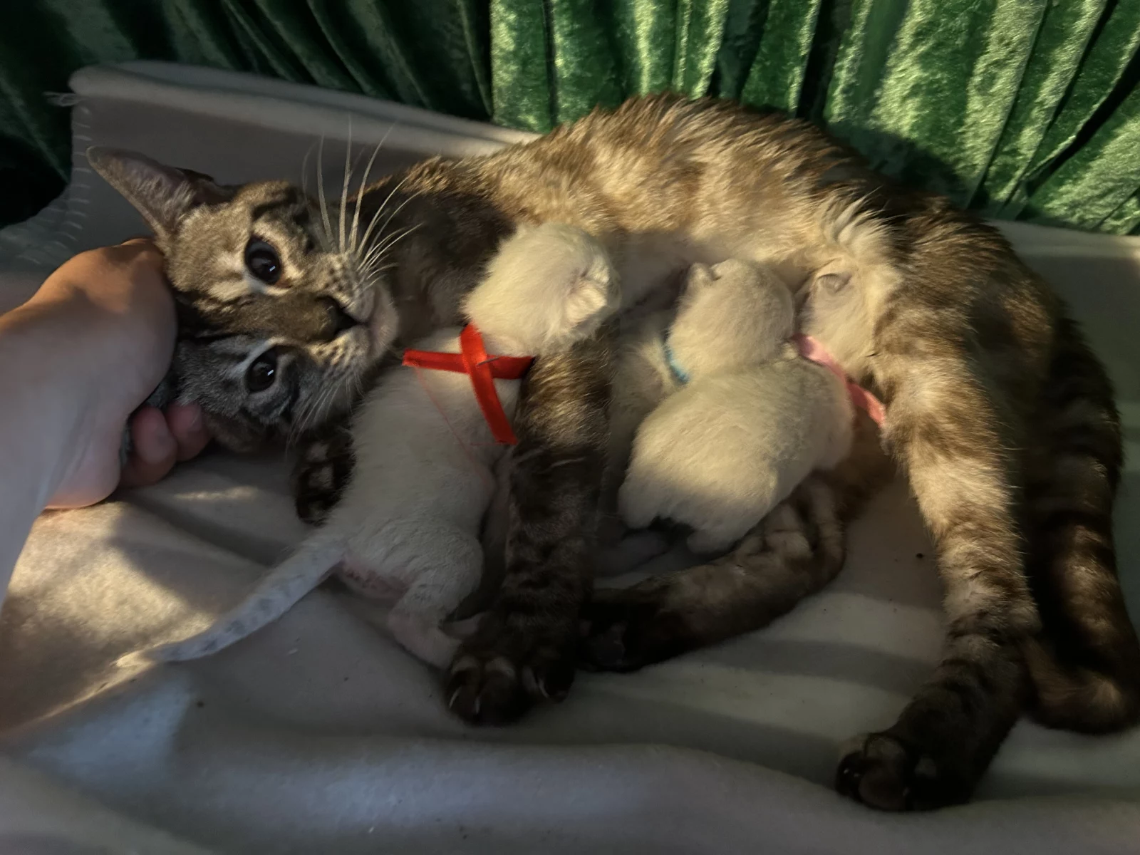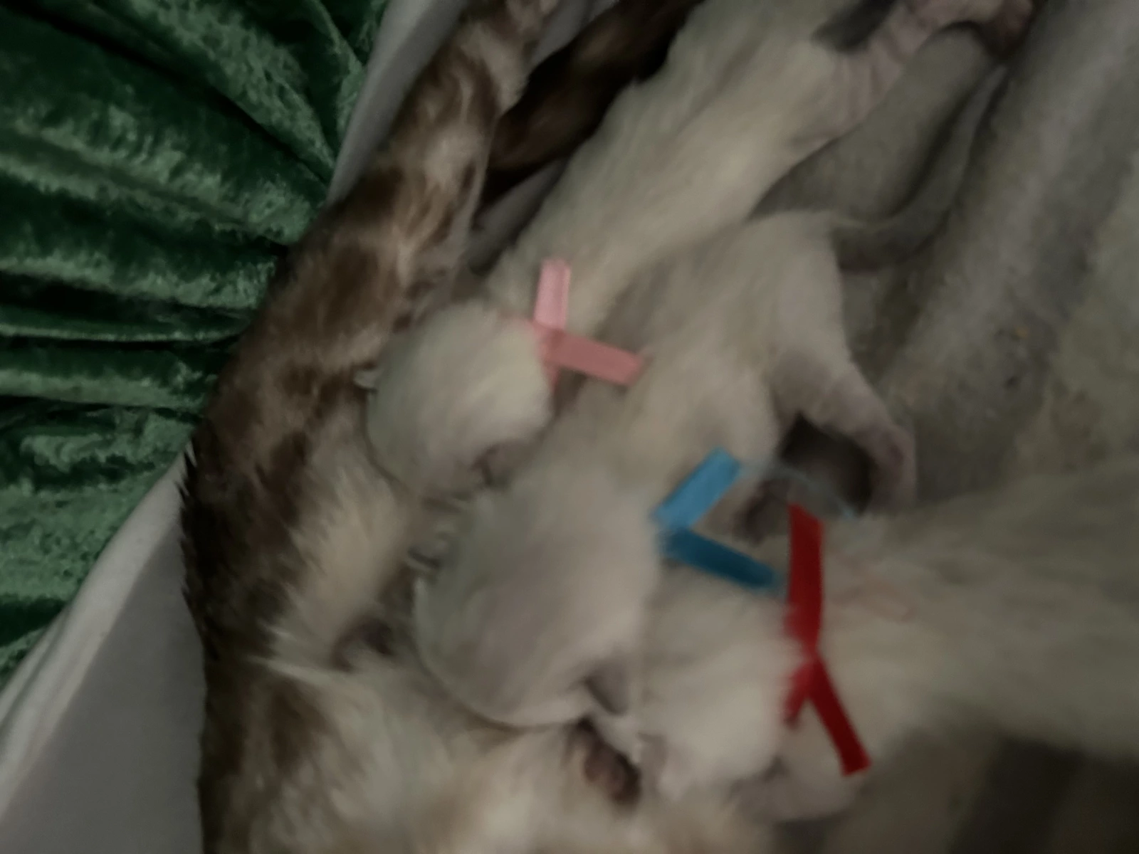 They will have amazing Blue eyes and a stunning Snow Coat, the pattern will be slow to come in but has already started to improve