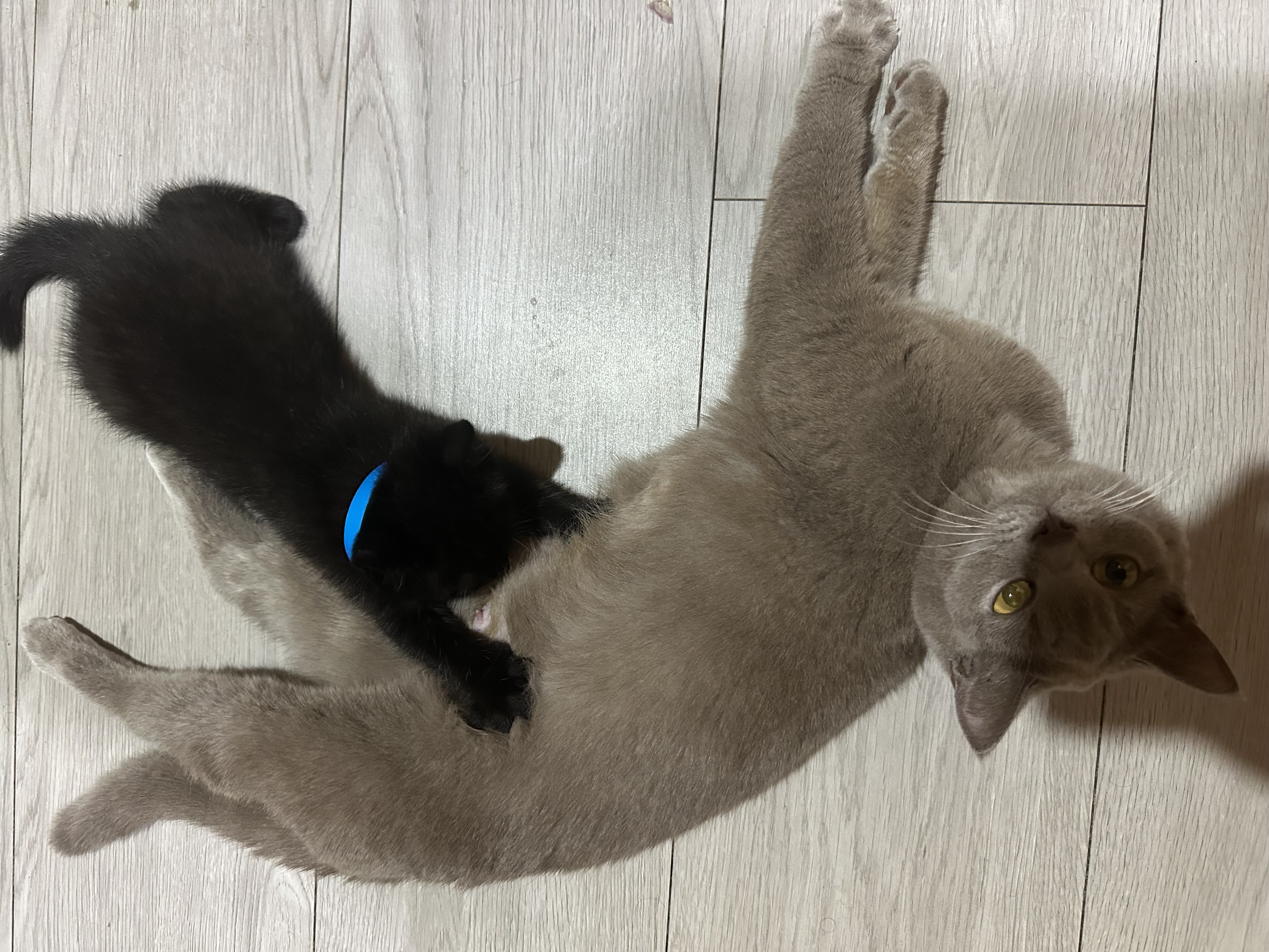 We have five beautiful British Shorthair cross short-hair kittens available, including one male and four females. They were born on 01/01/2026 and are currently 7 weeks old.