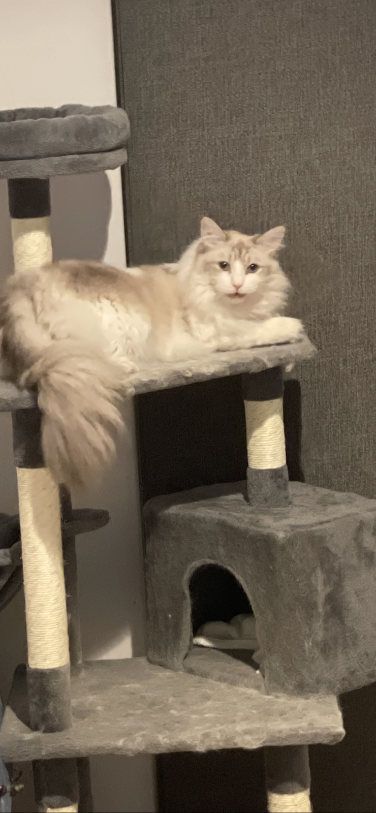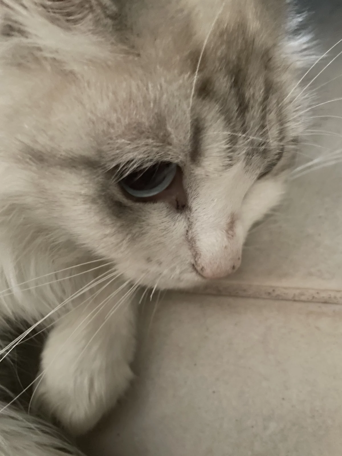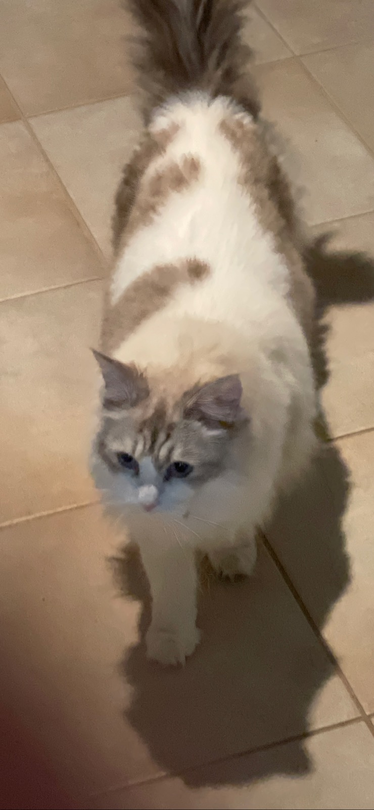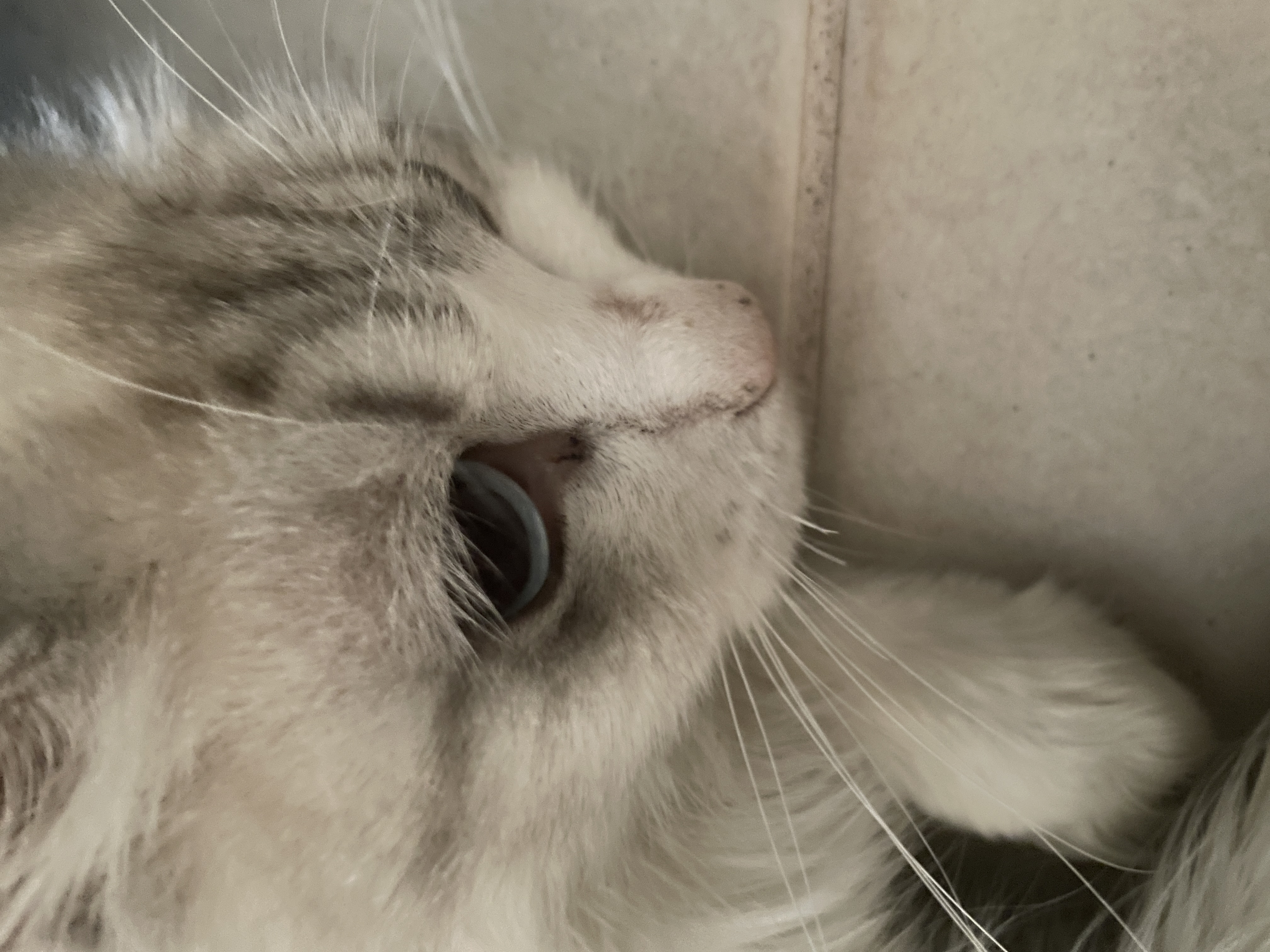 Beautiful domestic short hair cat around 2 years old. With beautiful blue eyes and white fur. She is a very playful cat that takes some time getting used to. But overall she is a amazing playful beautiful cat ready to find a new home