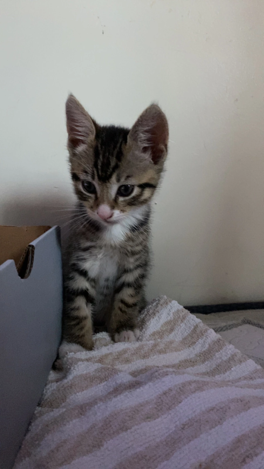 Tabby kitten looking for a good home. Around 2 months old not very sure didnt get much information from previous owner. Will come with 2 feeding bowels, litter box n scoop, whatever food is left over before pick up, two bell ball toys, litter liners, 2 poop bag rolls.