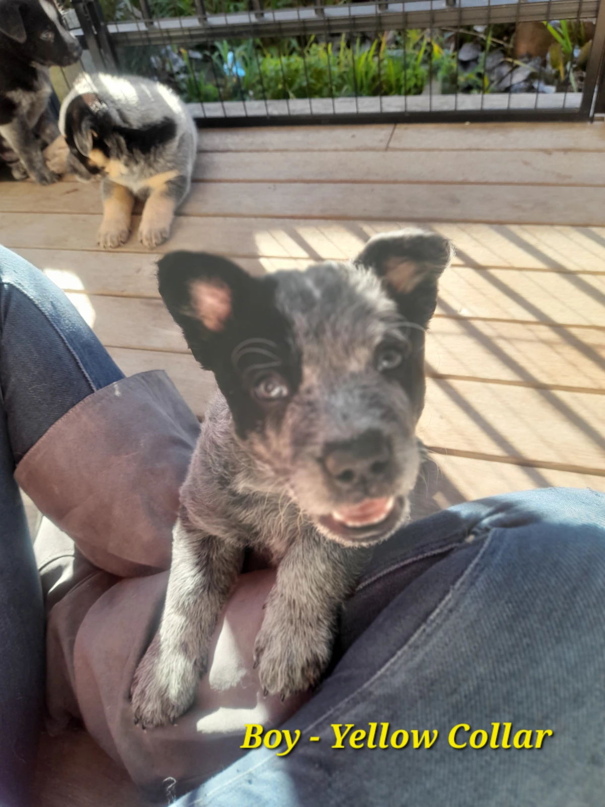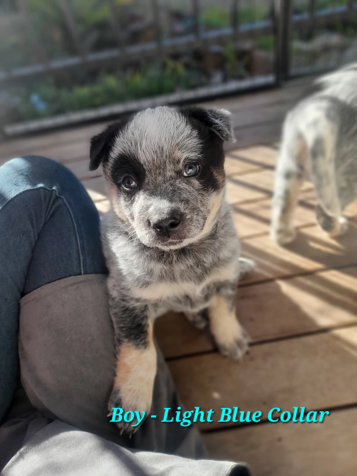 These unique eight-week-old puppies are officially ready to embark on a new adventure with their forever families. This fascinating litter consists of four lovely girls and five handsome boys, blending the intelligence and loyalty of the Australian Cattle Dog with the striking spirit of the Husky. The mother is a purebred Cattle Dog, while the father is a Cattle and Husky mix. This genetic combination results in happy, chubby, and incredibly healthy puppies that are sure to be active and devoted companions.