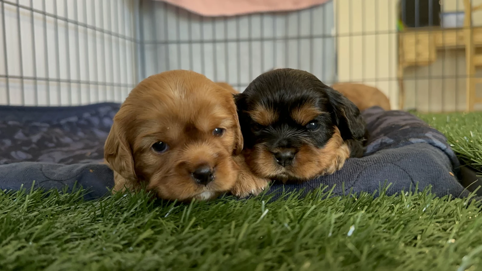 At the moment we have two Ruby girls available (pictured together in several shots) and possibly a tricolour boy. All other puppies are spoken for.
