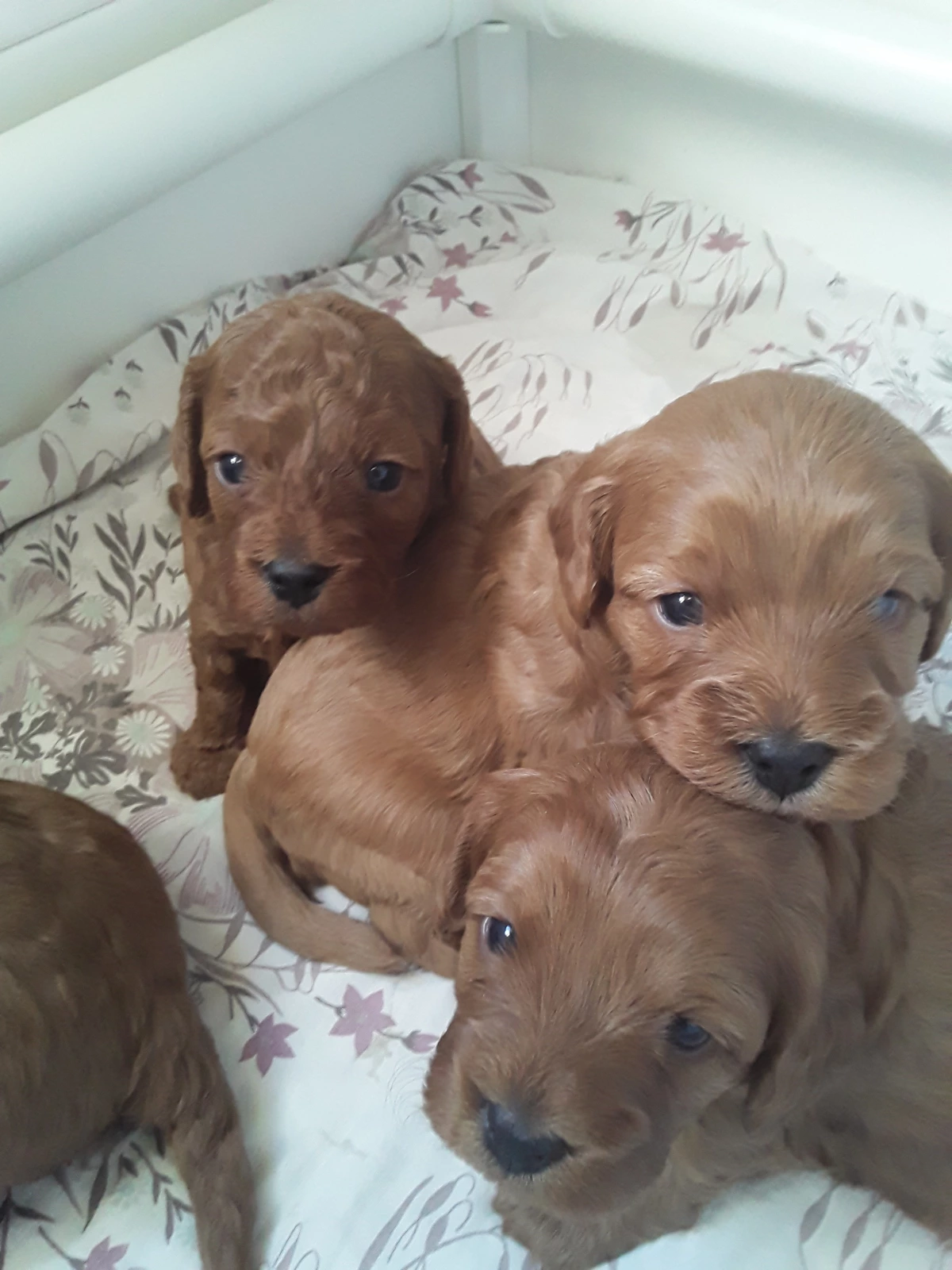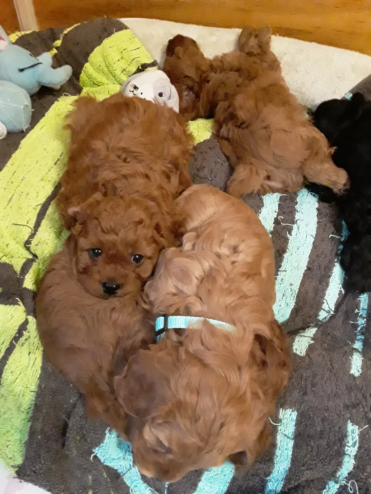 Hi we have a litter of 5 males cavoodle puppys rehome from 2 august . The puppys come fully vaccinated and micro chipped . All puppys are health checked and come with 1 month free pet insurance.The cavoodle Breed is non shedding and hypo allergenic Ideal for allergy suffers . Our Cavoodle puppies are known for their sweet nature, loyalty, and intelligence, making them the perfect addition to any family. They are socialized with children and other pets, and are sure to bring joy and love to their new homes.