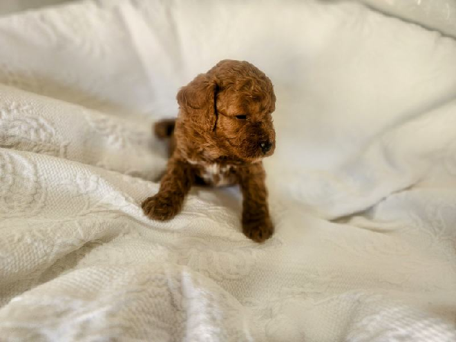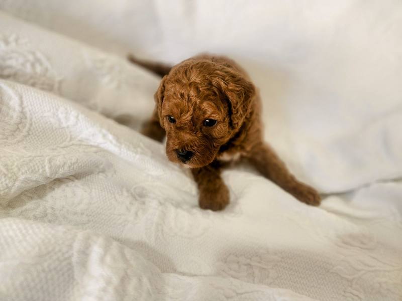 • Mum is an F1 Toy red Cavoodle (6.5 kg).