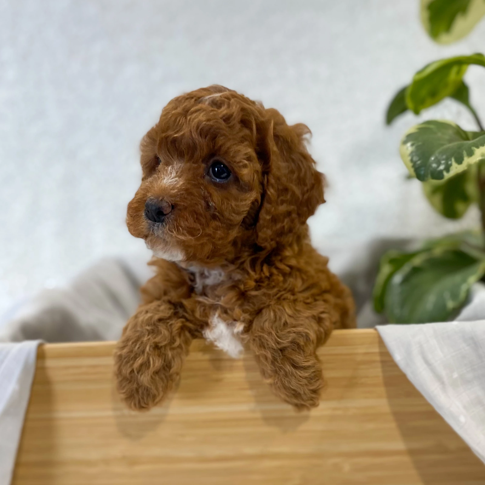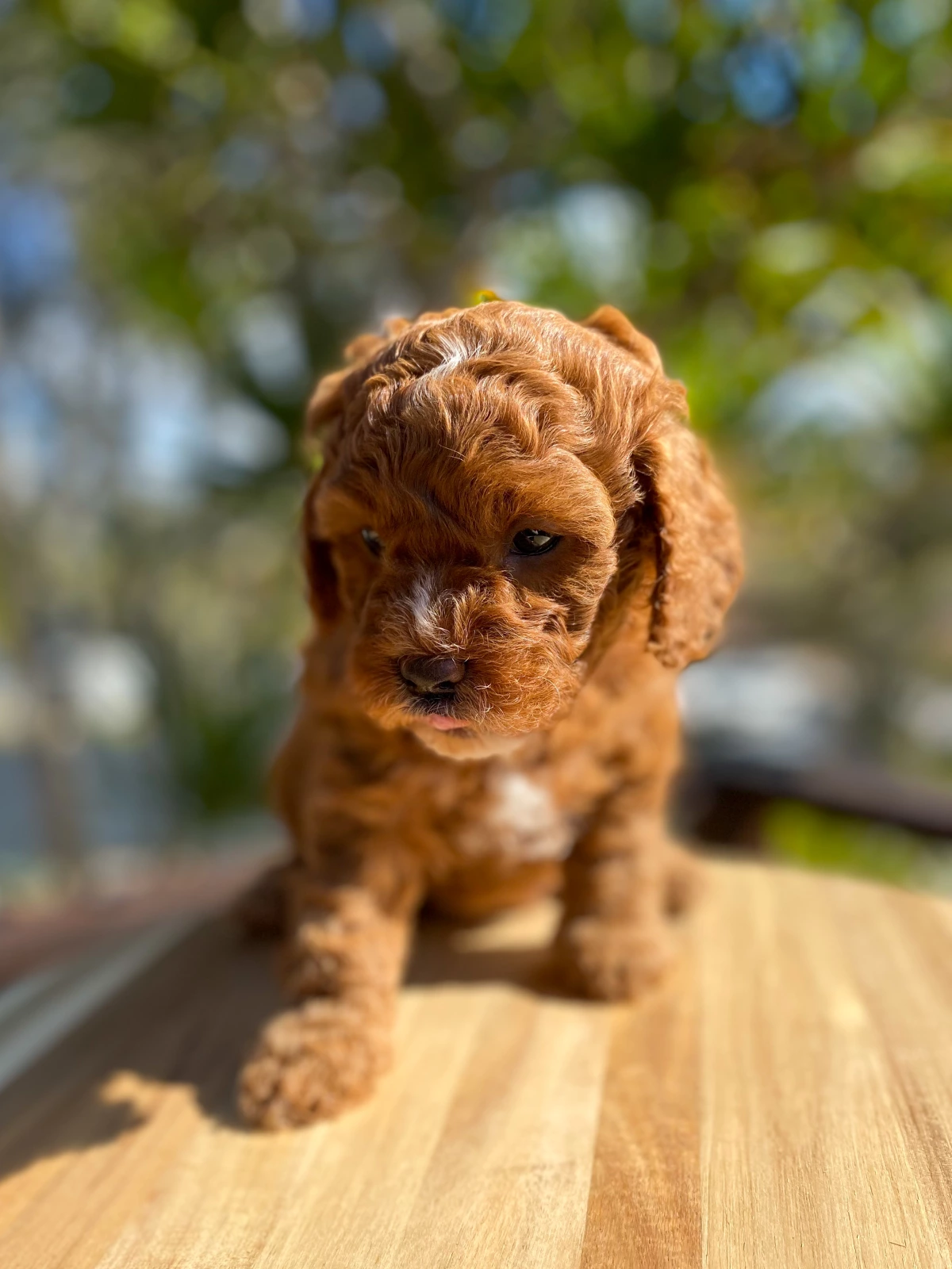 She is a red abstract Cavoodle. Both parents are DNA clear through Orivet. She will have non-shedding, hyperallergenic wool coats and is estimated to grow between 5-7kg.