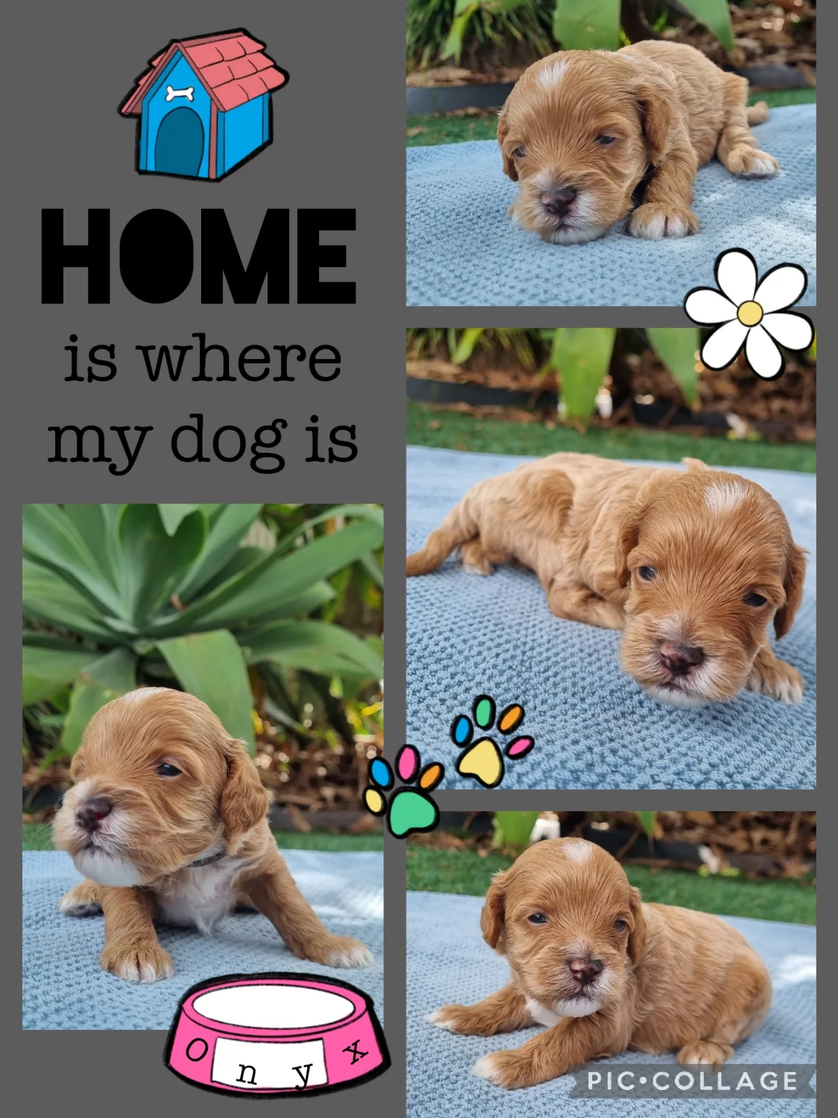 Onyx is expected to be 4-5kg fully grown, with a medium curly/wavy coat.