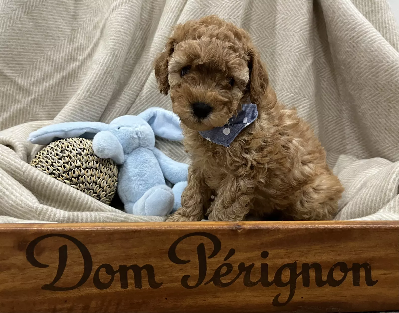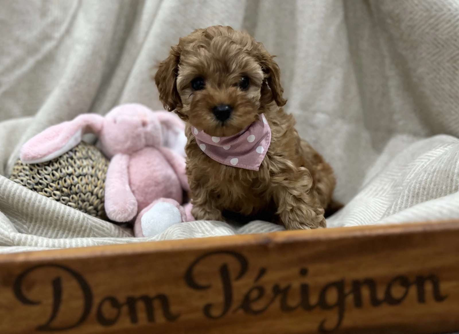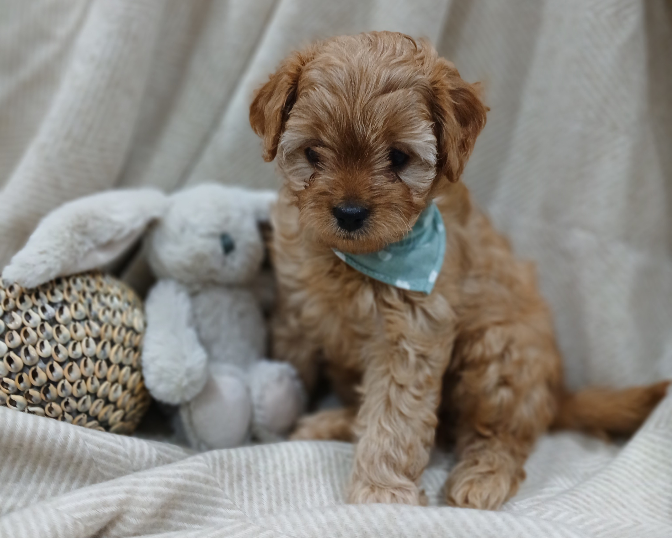 We currently have the cutest ever ruby red F1b toy Cavoodle puppy available mid-September 25. Mum Tia, is a first-generation Cavoodle, and her dad, Archie is a 4.5kg toy poodle owned by the same lovely people who care for Heffner, the well-known alpaca who had a little Tete a tete with King Charles. With mum weighs just under 5kg, our puppies are expected to grow to a weight of up 5kg fully grown. They are true toy-sized, with silky soft, beautiful waves, very low-shedding coats — ideal for allergy sufferers like myself.