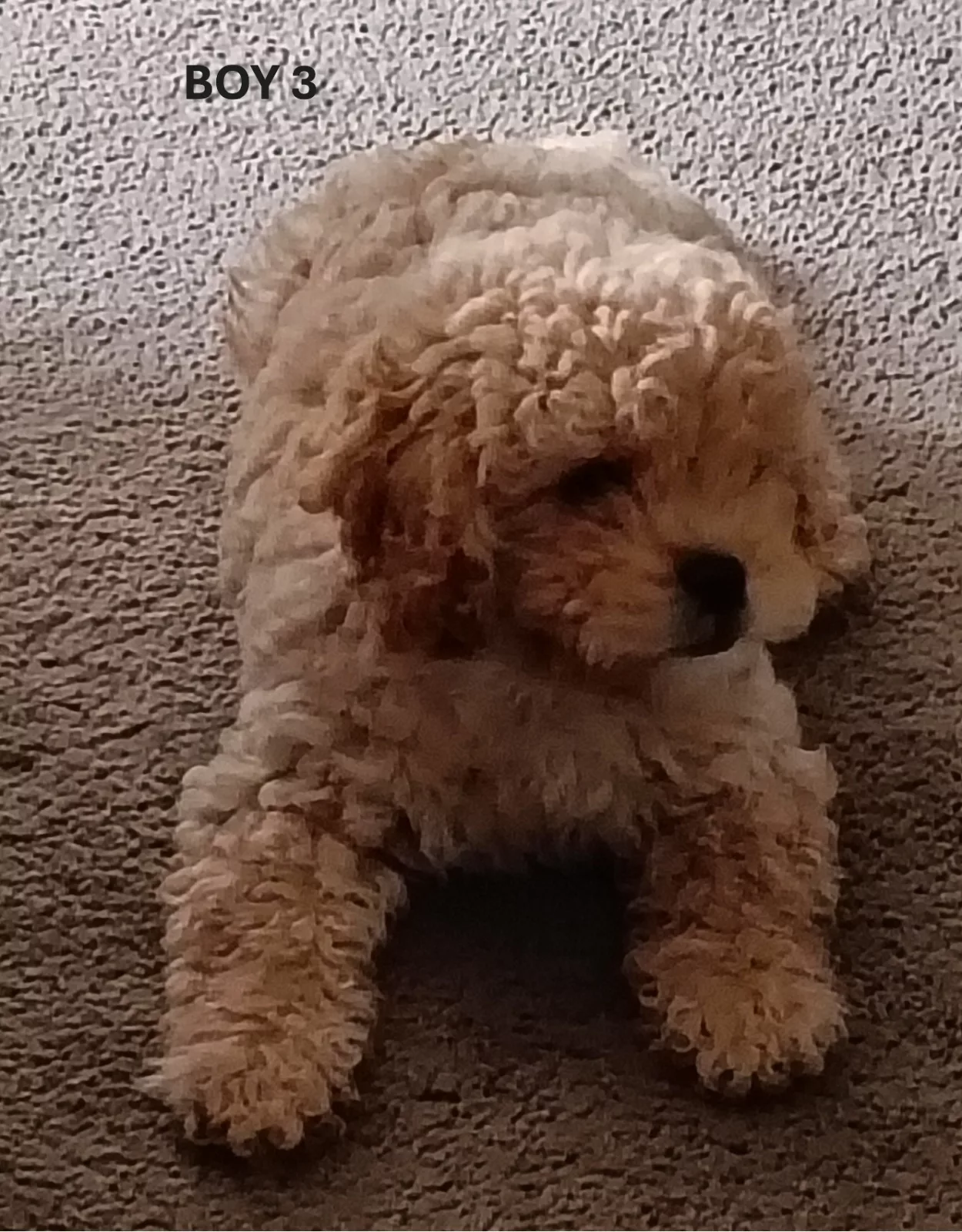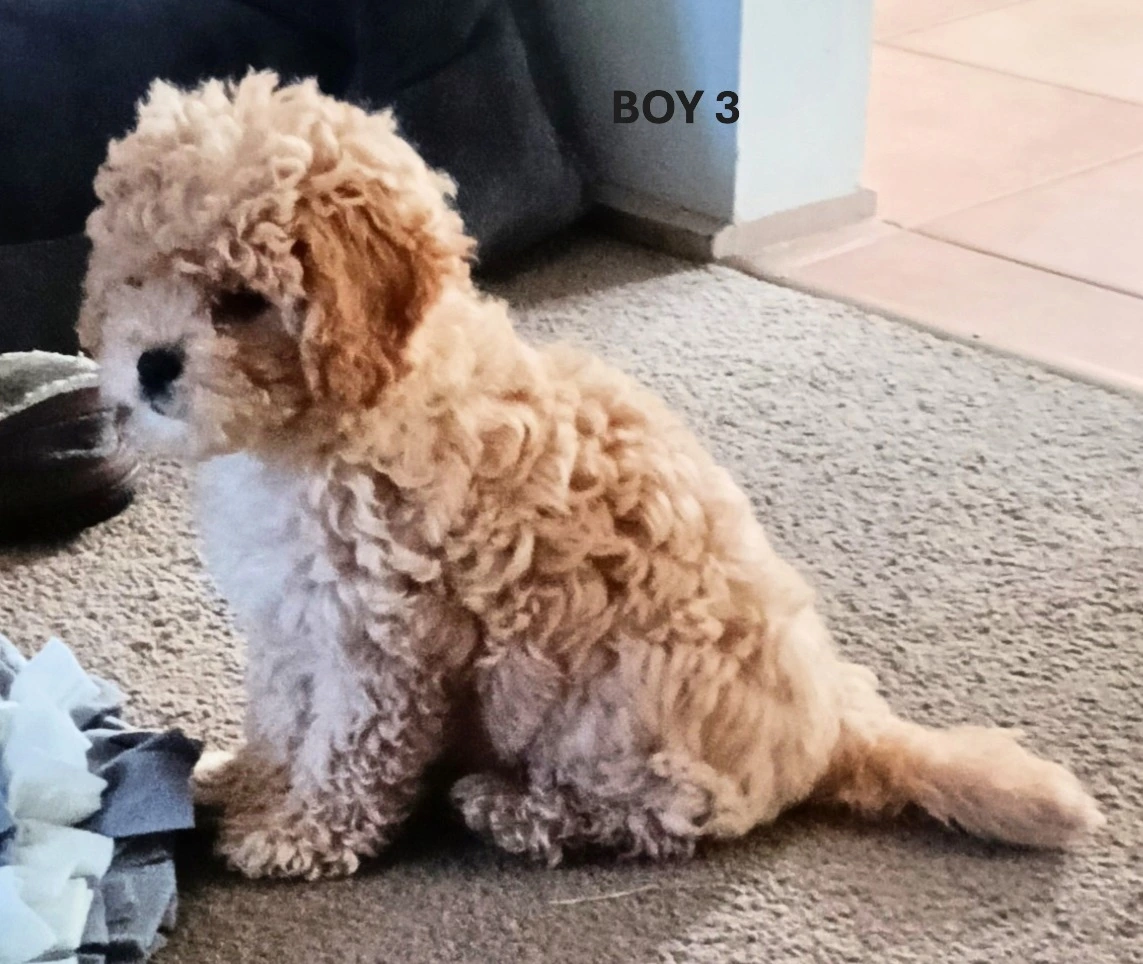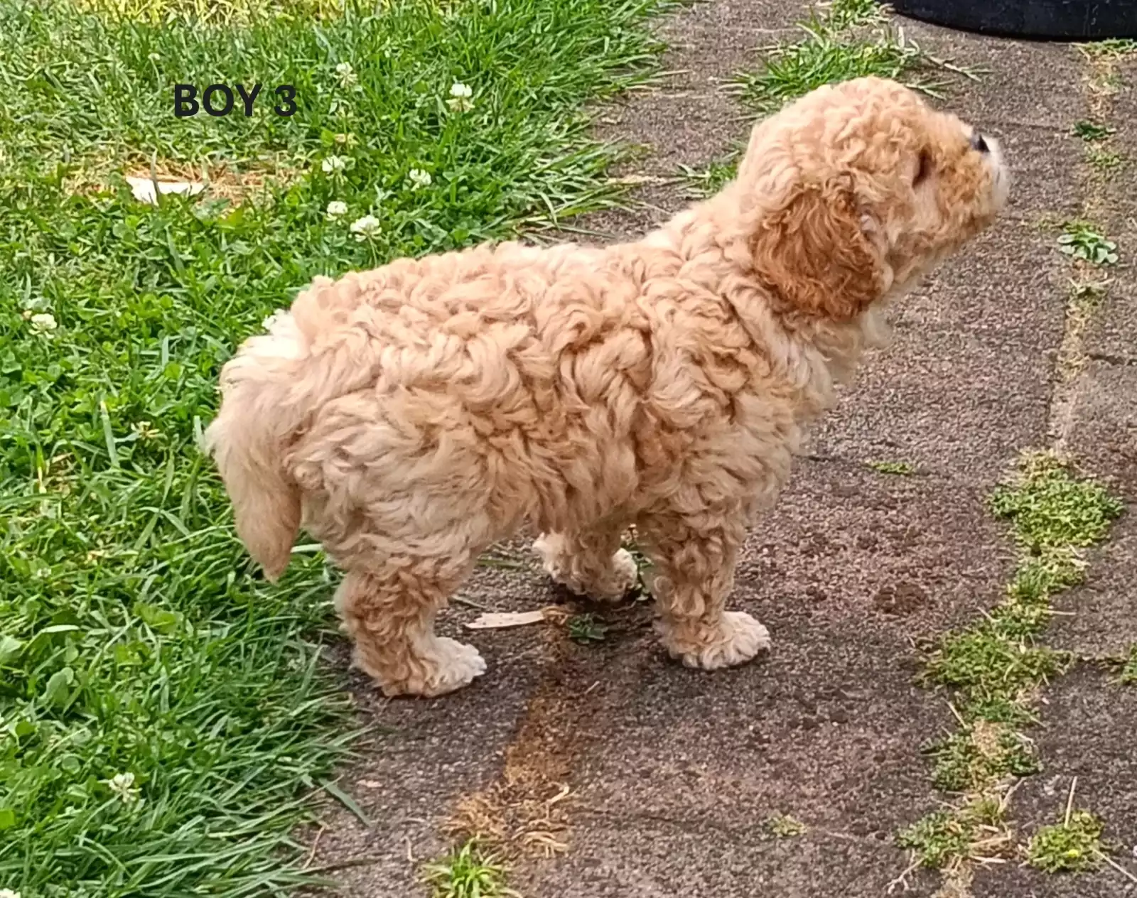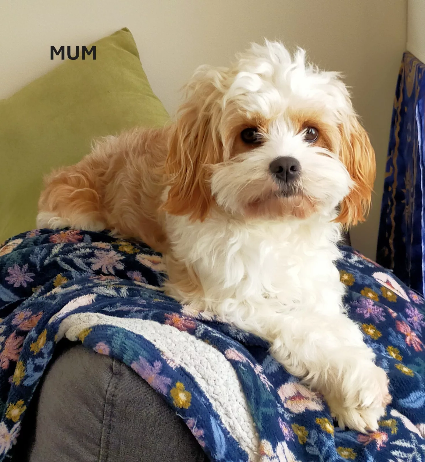 The pups are a F1b Cavoodle with mum being a first generation cavoodle and dad is a purebred toy poodle.