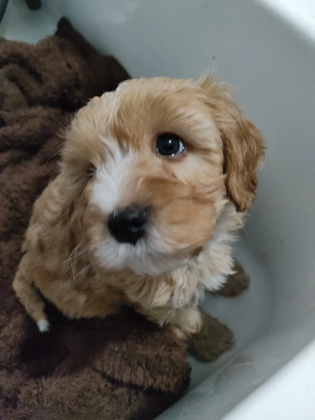You are welcome to come and see the puppies and their parents. Mum is a pure miniature parti Poodle and Dad is a ruby Cavalier King Charles, both in good health with gentle natures. These pups will make wonderful family companions.