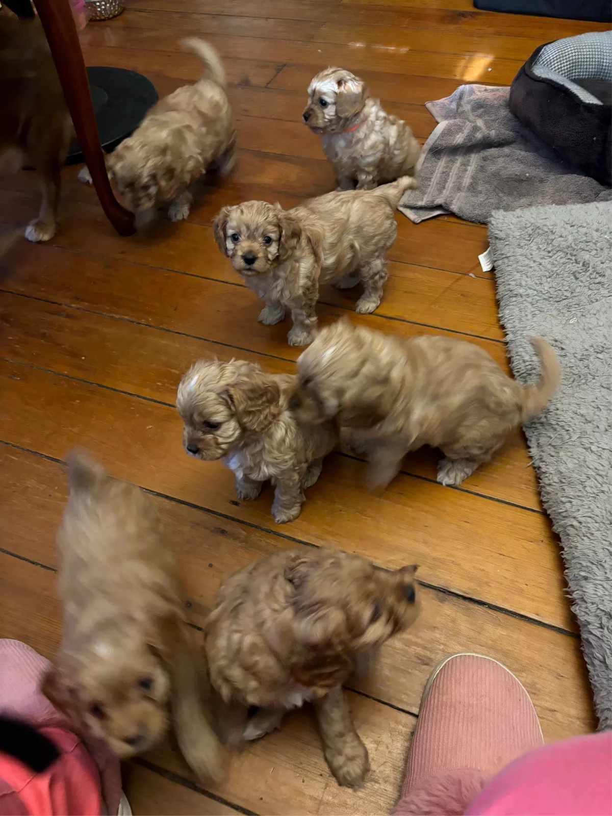 I have 7 stunning first-generation Cavoodle puppies looking for their forever homes. These puppies are perfectly healthy, microchipped, vaccinated, and vet checked, and are doing very well. They have been raised in a loving home environment and are very social, friendly, and affectionate. Used to people and everyday household noise, they enjoy cuddles, playtime, and being part of family life.