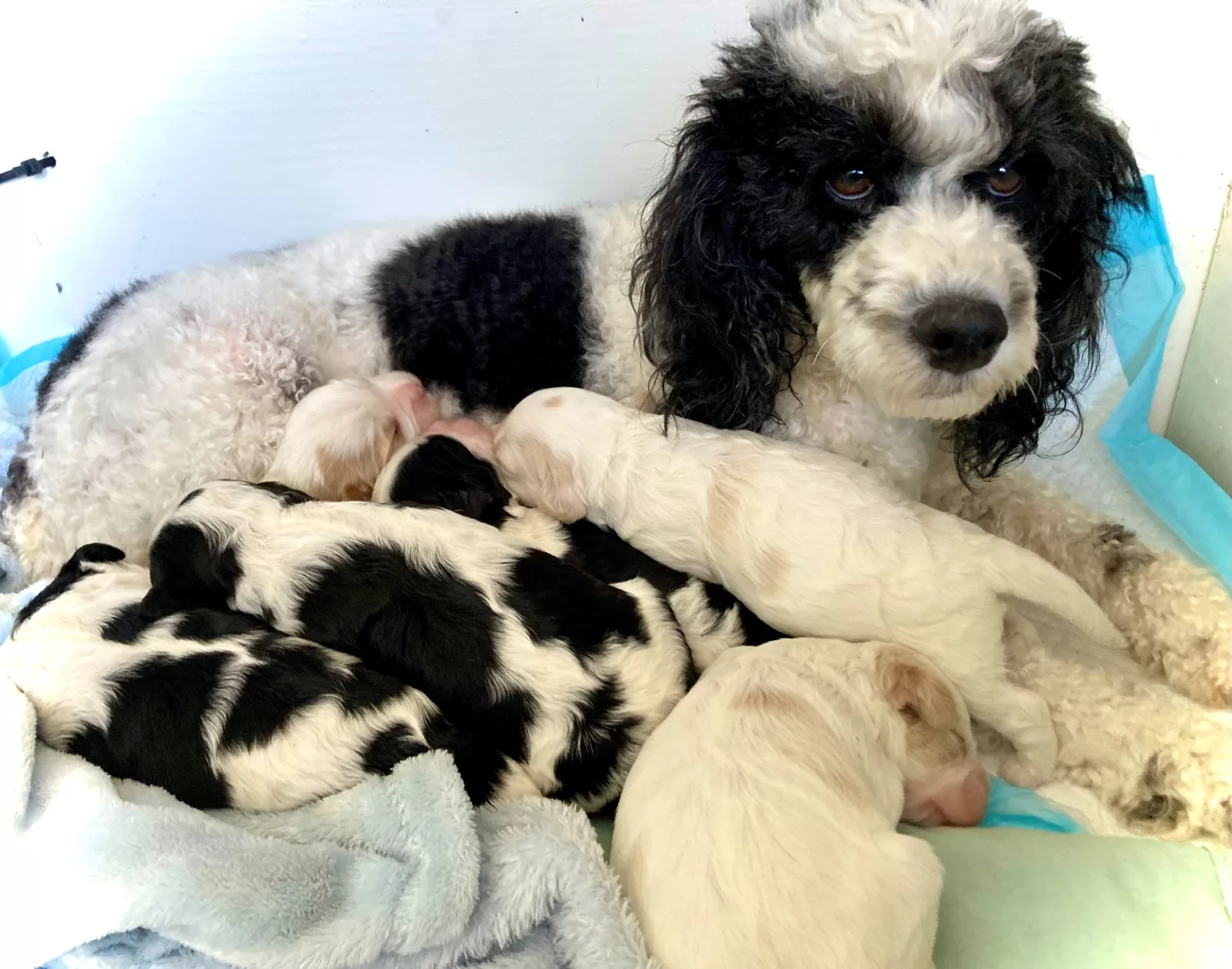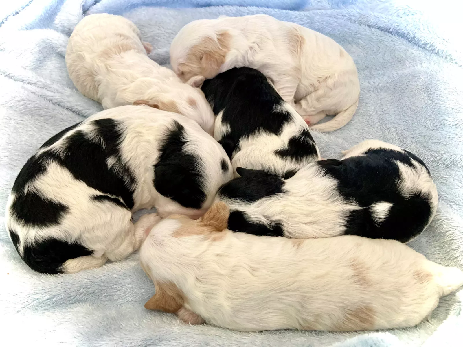 We have 6 adorable parti coloured Cavoodle puppies bred from DNA tested and vet checked parents both weighing 7kgs. The parents have been selected to produce healthy puppies with calm and gentle temperaments.