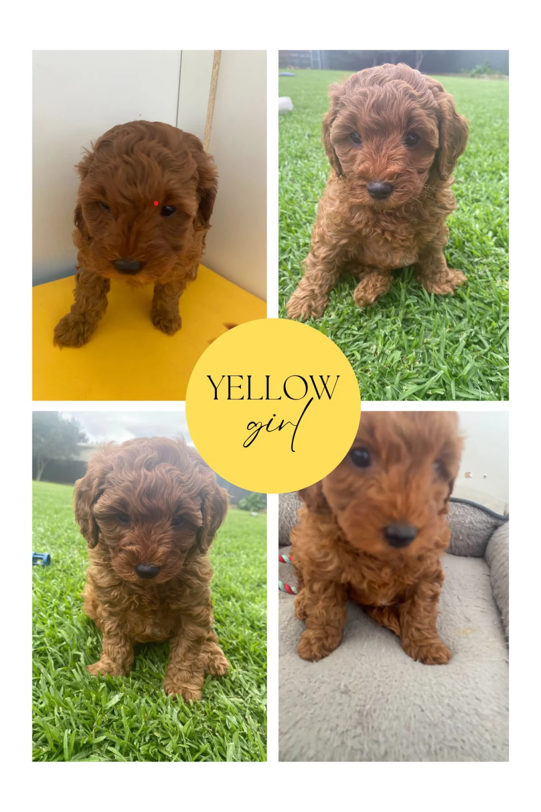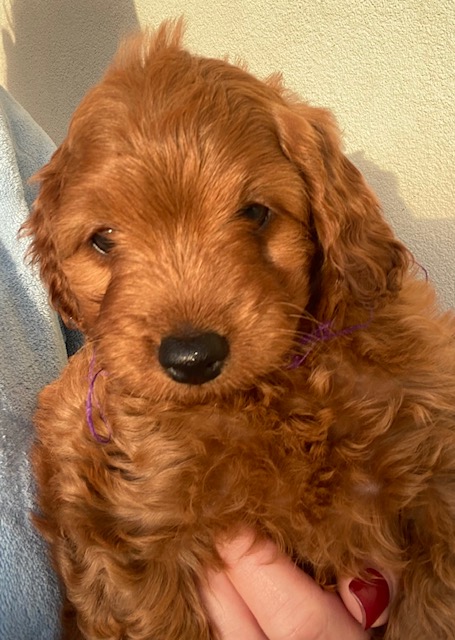 Mother is a 1st generation mahogany red Cavoodle 7kgs and father is a stud, at 4.5kgs also mahogany, purebred ANKC toy poodle with annual patella checks.