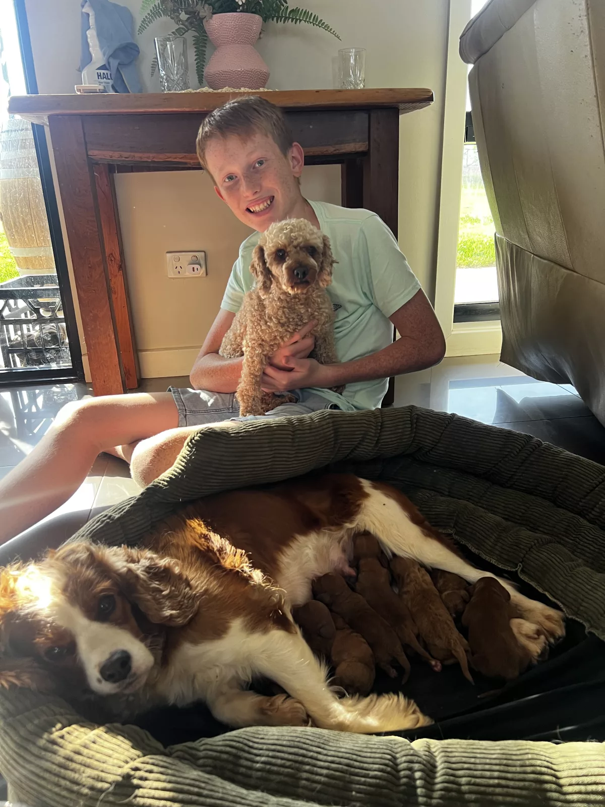 These girls have been raised in a family environment and are used to everyday household noise and handling. They enjoy cuddles, playtime, and being around people. Cavoodles are known for being intelligent, gentle, and easy to train, making them great family pets and suitable for indoor living. Their coats are low to non-shedding, ideal for people with allergies.