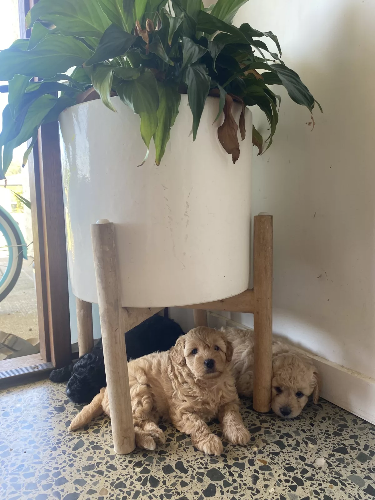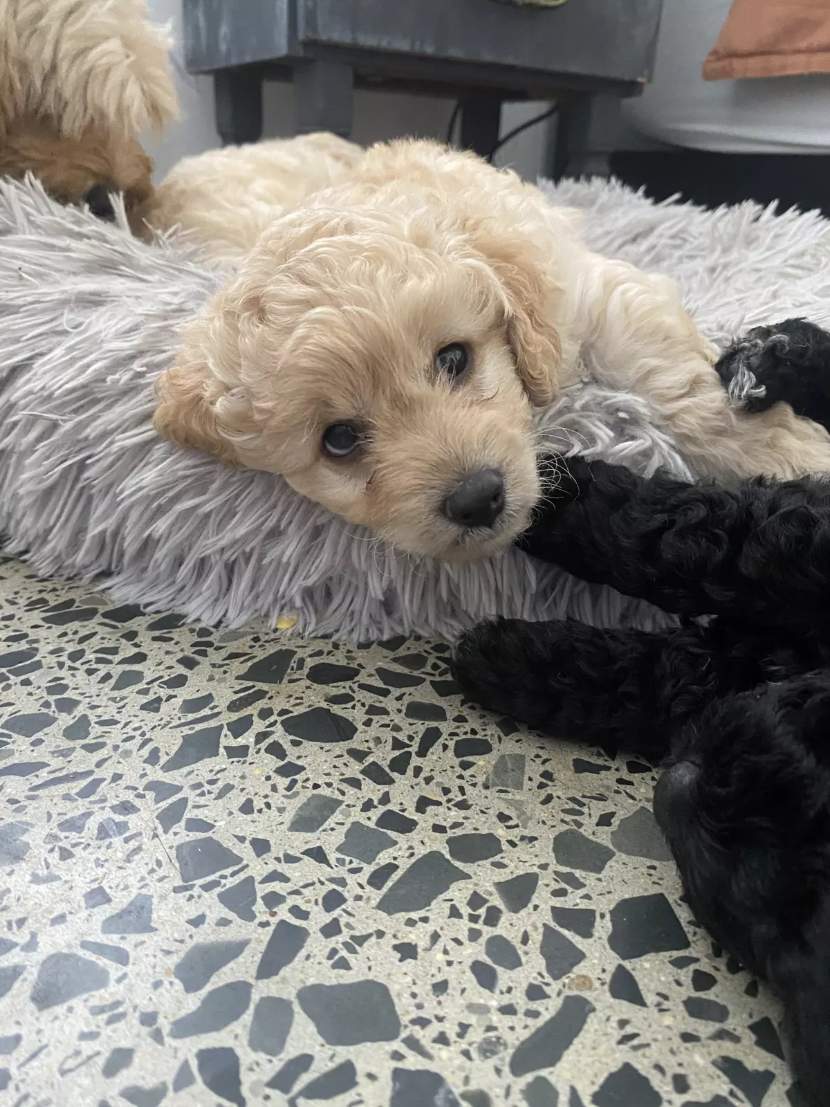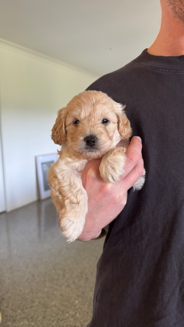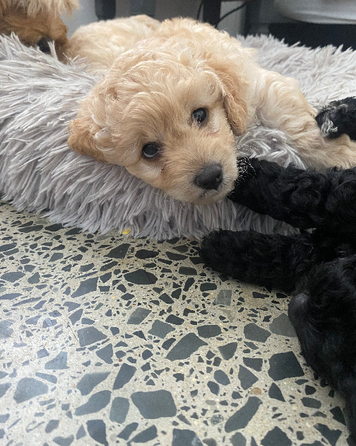We have 2 fawn and 1 black Cavoodle puppies available and looking for their forever homes. They are 7 weeks old, vaccinated, and microchipped, and are happy, healthy, and growing well.