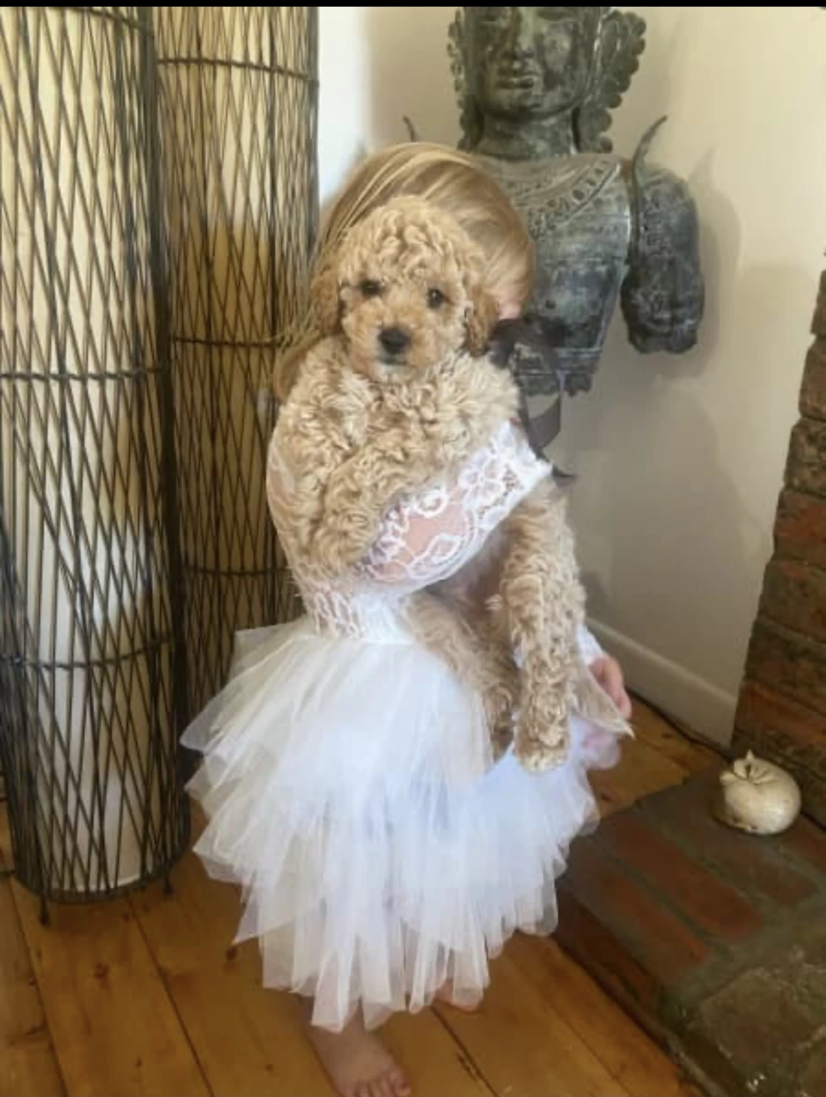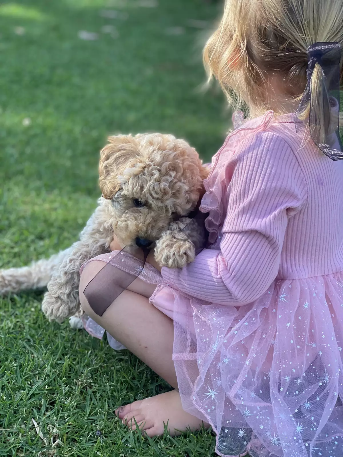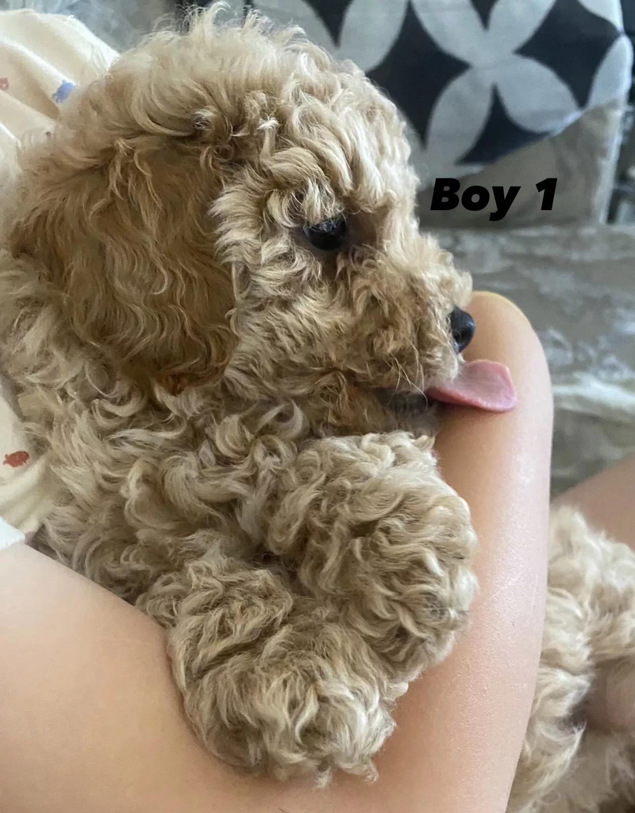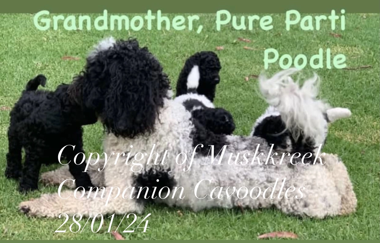 Both parents are curly Cavoodles (¾ Poodle, ¼ King Charles Cavalier), giving him a lovely soft, low-shedding coat and a calm, people-focused temperament. Cavoodles are known for being intelligent, easy to train, and great family companions.