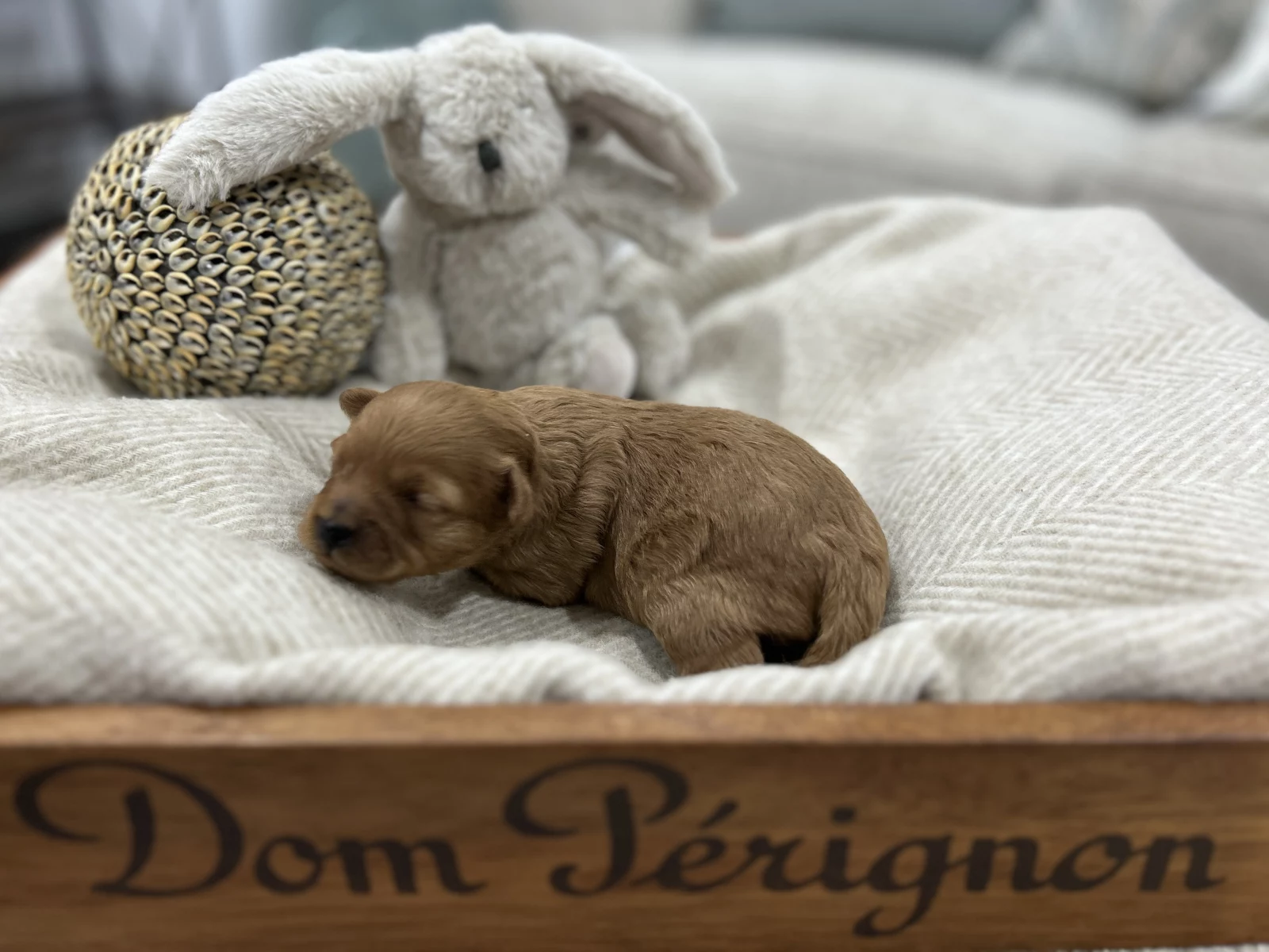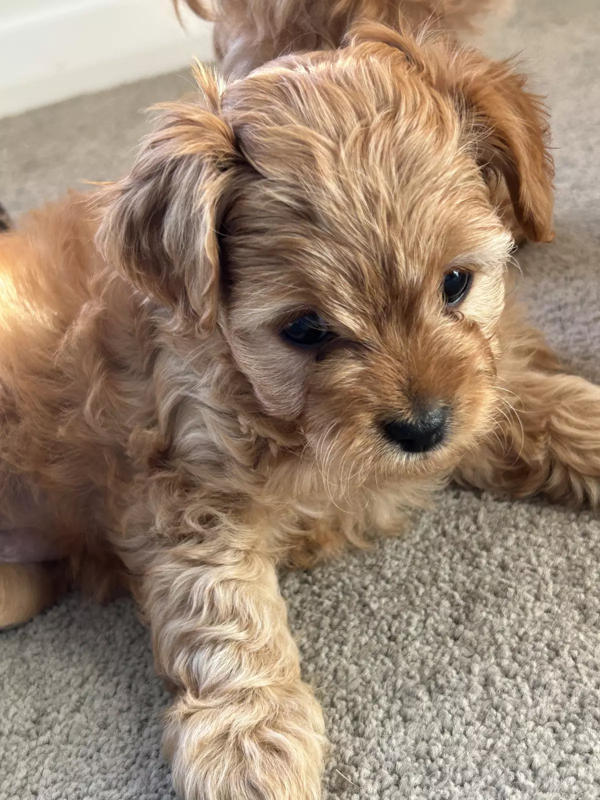 We currently have the cutest ever ruby red F1b toy Cavoodle puppy available mid-September 25. Mum Tia, is a first-generation Cavoodle, and her dad, Archie is a 4.5kg toy poodle owned by the same lovely people who care for Heffner, the well-known alpaca who had a little Tete a tete with King Charles. With mum weighs just under 5kg, our puppies are expected to grow to a weight of up 5kg fully grown. They are true toy-sized, with silky soft, beautiful waves, very low-shedding coats — ideal for allergy sufferers like myself.