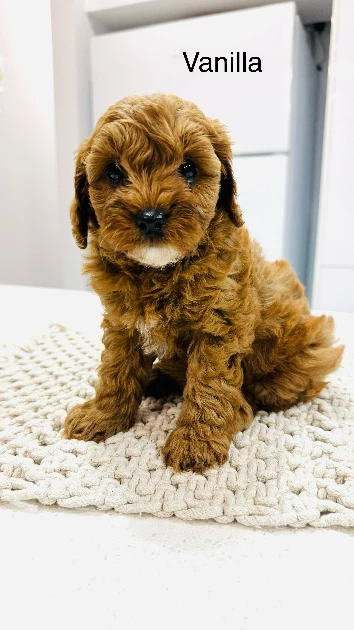 We are small registered boutique breeders of toy Cavoodle puppies that are bred for their beautiful appearance and personality. At Cutest Cavoodles our puppies are raised in a loving home environment with children and other pets. Cavoodles are ideal for families. Curly hypoallergenic coats (non-shedding) with teddy bear looks. Puppies are friendly, affectionate and playful. Our puppies are small, both parents are truly gorgeous with beautiful faces and small noses. We have rare colouring in this litter including chocolate, apricot!!! puppies will come with basic training. At Cutest Cavoodles all our puppies are DNA cleared and they will never have any genetic hereditary diseases that are sometimes common in cross breeds. We are looking for the best homes for our special puppies. Puppies are microchipped, vaccinated and dewormed every two weeks. You will receive a relevant paperwork. Please feel free to contact me on Reveal Phone with any questions or enquiries. I prefer you call so we can discuss all issues. Puppies are ready for their forever homes now. Please be quick as these will sell out fast. Negotiable for good homes. Pickup: Mickleham or can drop off (Conditions apply).