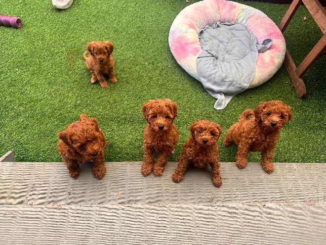 Meet our gorgeous Ruby Cavoodle puppies! We have 3 adorable girlsAngel Face, Kali, and Athena and 1 charming boy named Apollo, all 8 weeks old and ready to find their forever homes. Born on August 13, 2024, each pup has its own unique personality just waiting to shine!