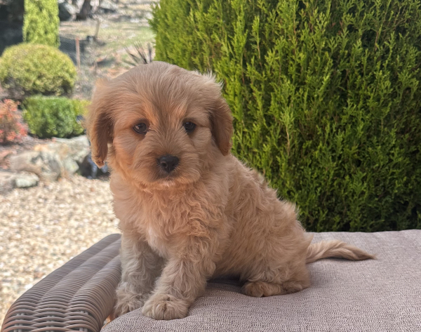 The Toy Cavoodle will grow to approximately 35-45 cm (toes to shoulder) and approx. 5 to 8 kilos in weight (depending on the size of the parents). Male A puppy will grow to 8 kilos and 45cm tall. Male B, Male C and Female A are smaller and will only grow to 5 kilos and up to 35cm tall as an adult.