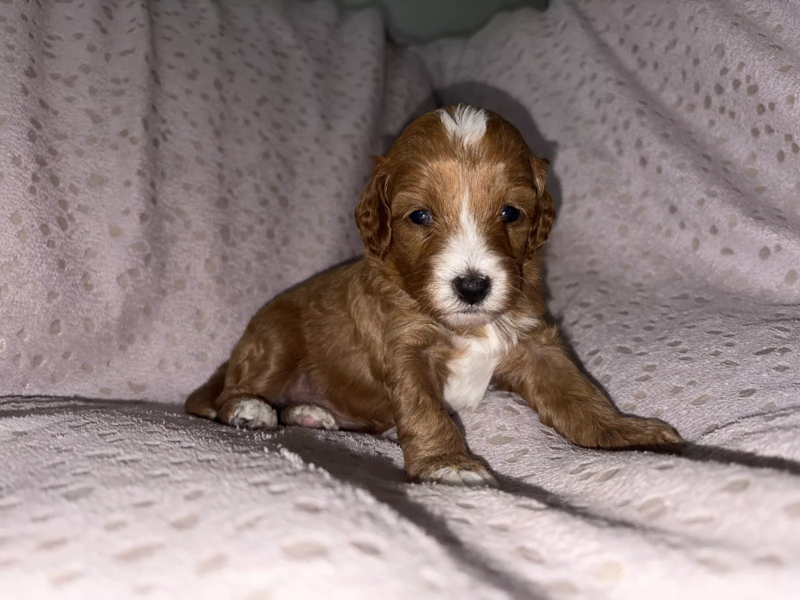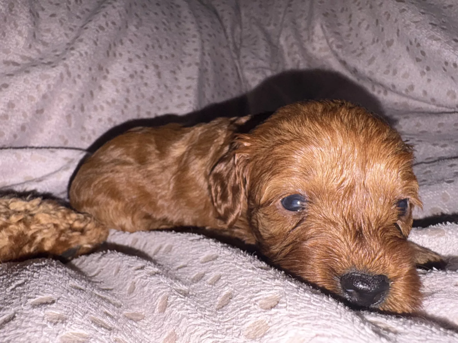 Dad is frozis 4kg red poodle he's a pleasure, a very handsome doggo who loves kids and other doggos also.