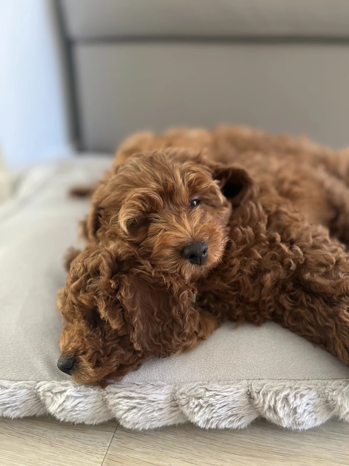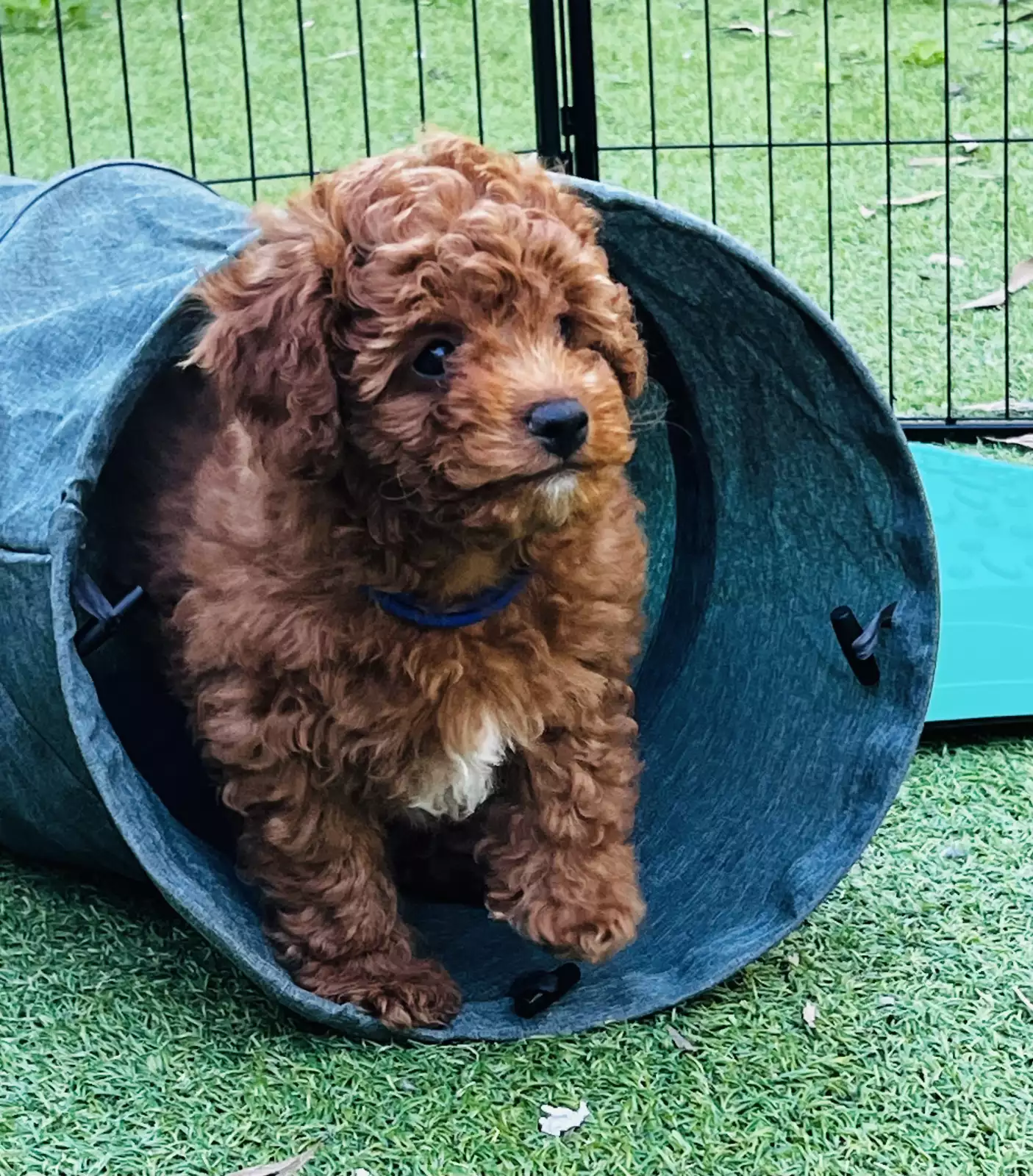 Mum is Maple, a 7.5kg red Toy Cavoodle and dad is Rocco, a 4kg red Mains Pedigree Toy Poodle.