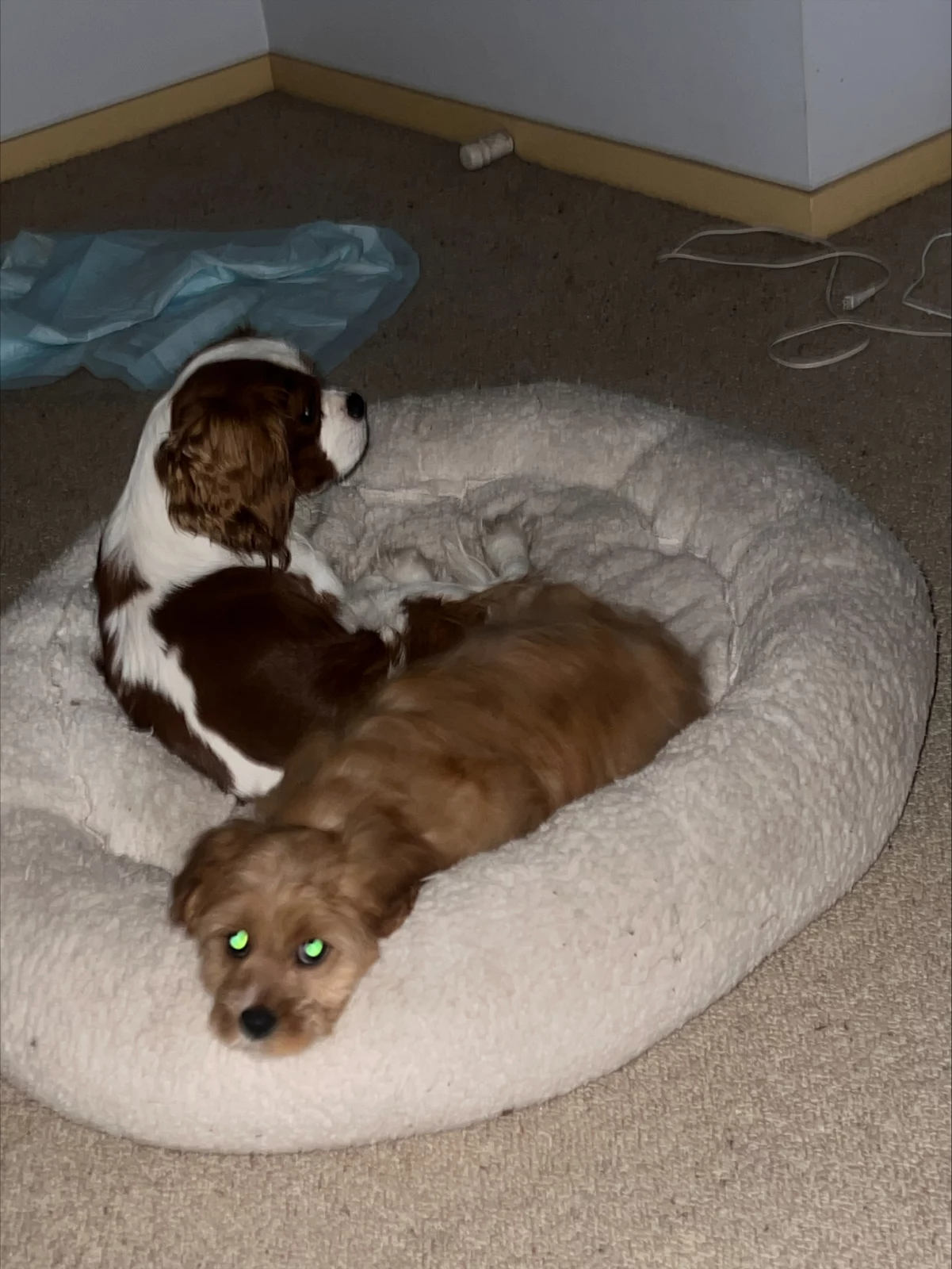 🩷🩵 These little ones are a perfect mix of love and charm – their mum is our sweet Poodle and dad is our gentle King Charles Cavalier, both family pets raised in a loving home.