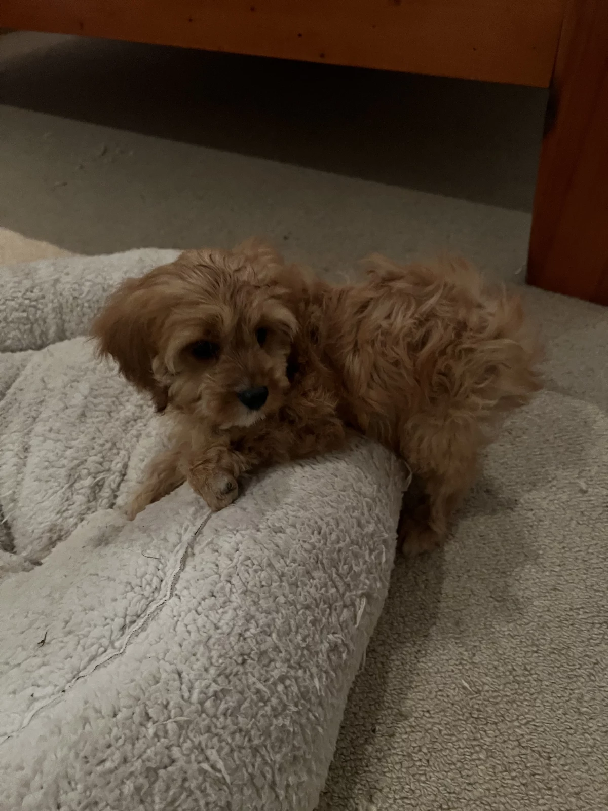We have four beautiful 2.5-month-old Cavoodle puppies looking for their forever homes – one boy and three girls. Last two pictures are the dad and mom.